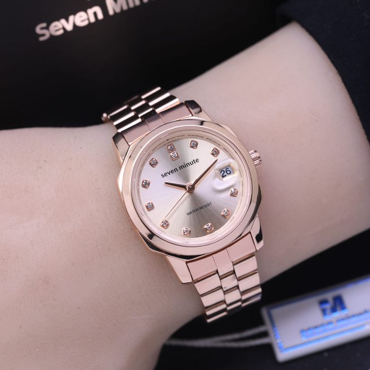 Jam Tangan Wanita Seven Minute M751 Strap Rantai Tanggal Aktif Free Box, kartu & Baterai