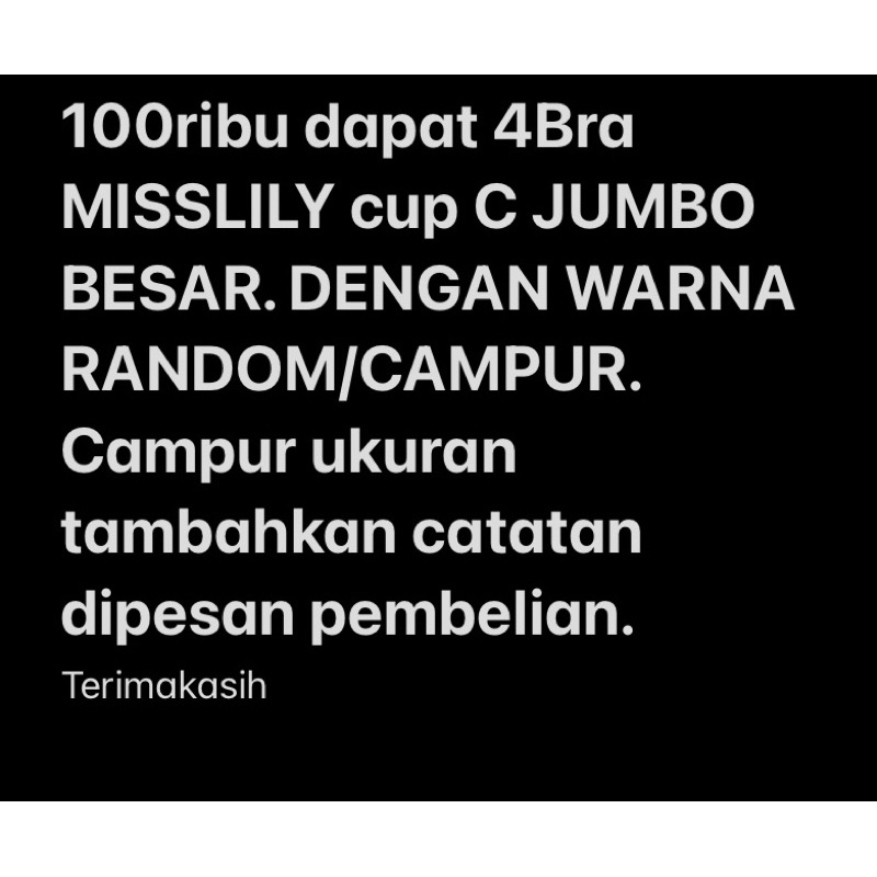 4 PCS BRA JUMBO MISSLILY CUP C KAIT 3 IMPORT PREMIUM (100 RIBU DPT 4 PCS) CAMPUR WARNA ART 1188 107 112