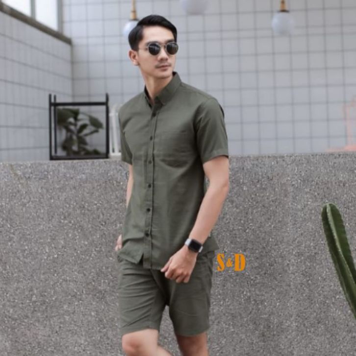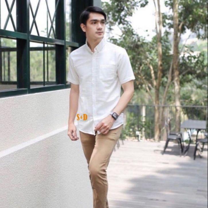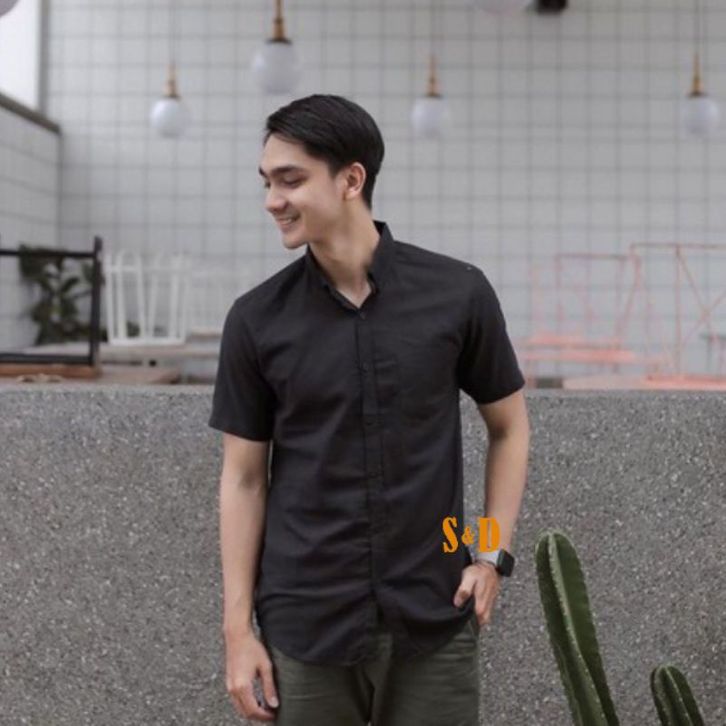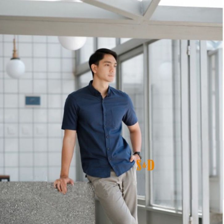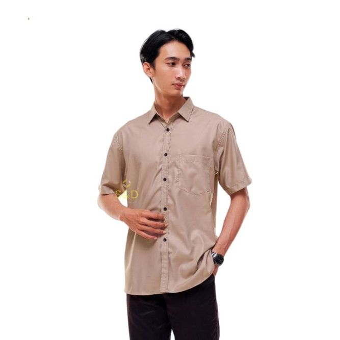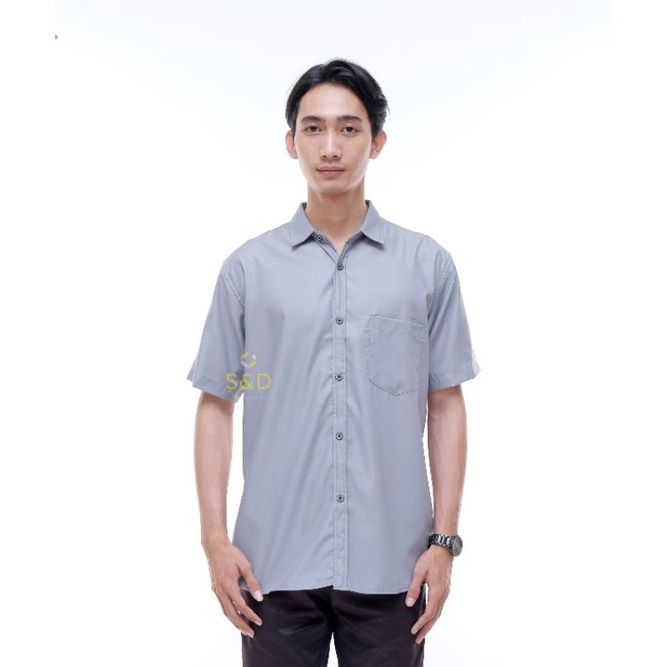 Kemeja Pria Polos Lengan Pendek, Slim Fit, Toyobo Eksklusif.