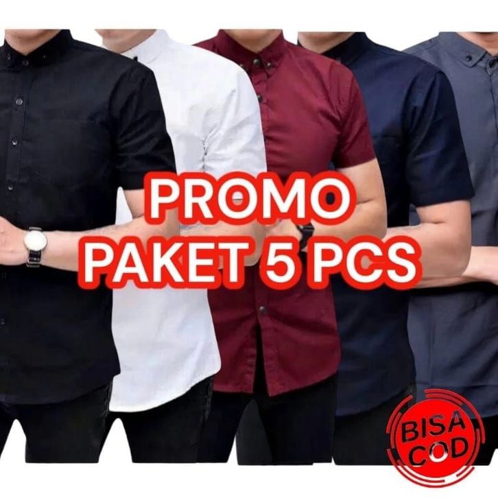 100 RIBU DAPAT 5 PCS KEMEJA HEM PRIA LENGAN PENDEK POLOS