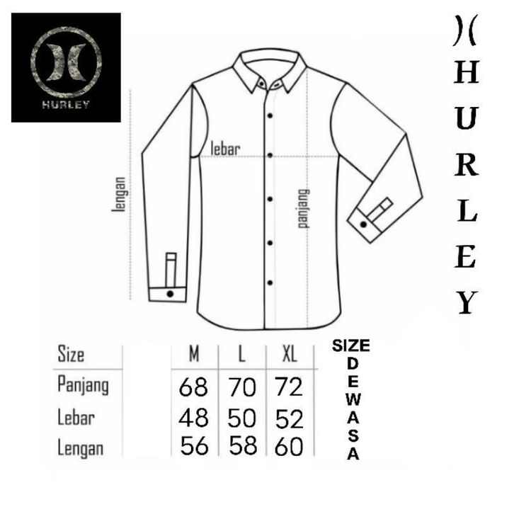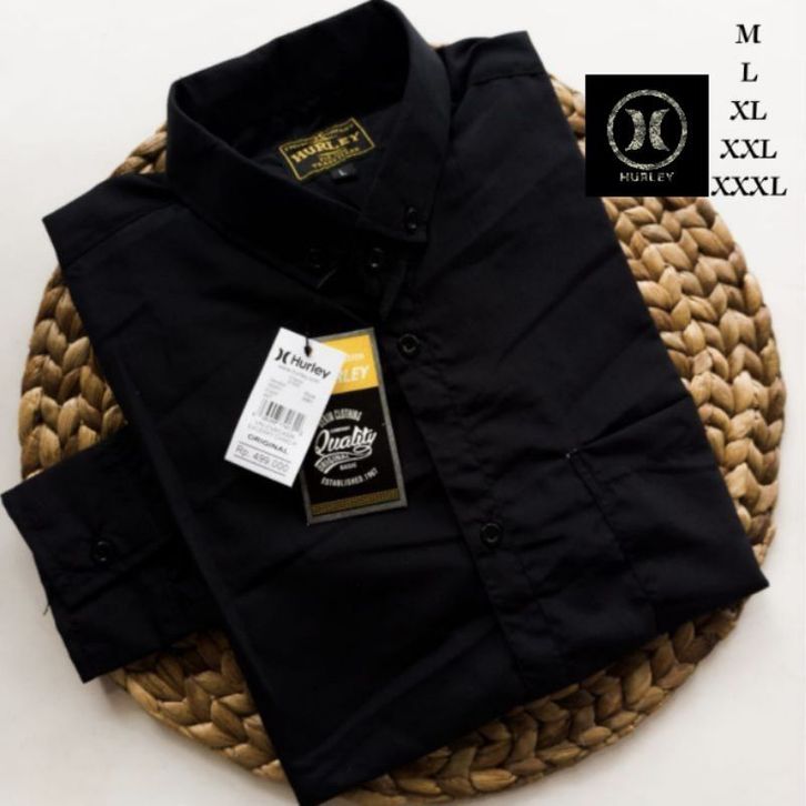 Kemeja Pria Polos Lengan Panjang Original Hurley Model Slimfit Kemeja cowo polos lengan panjang slimfit hem pria kantor
