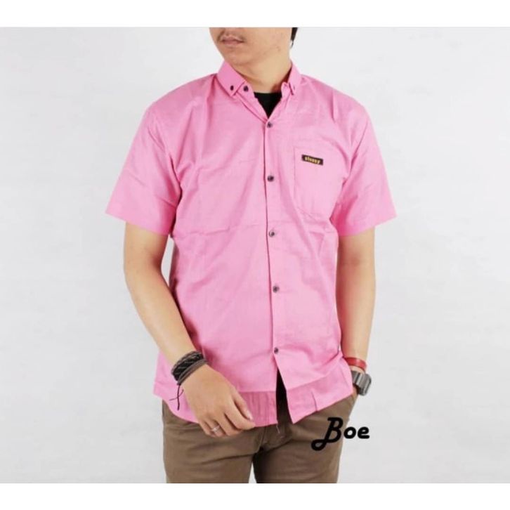 Kemeja Polos Lengan Pendek Slimfit Pria Dewasa Katun Linen Poplin Oxford Premium Cowok Slim