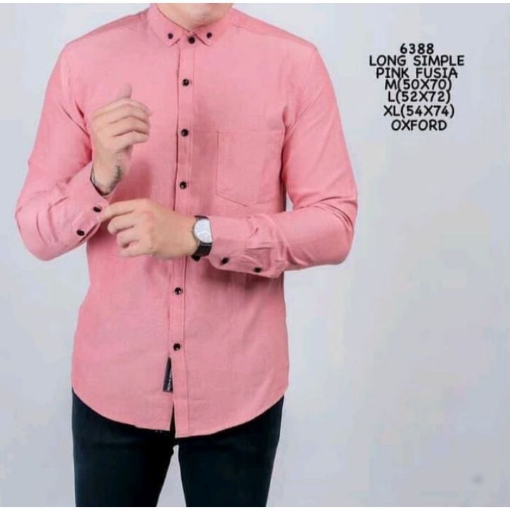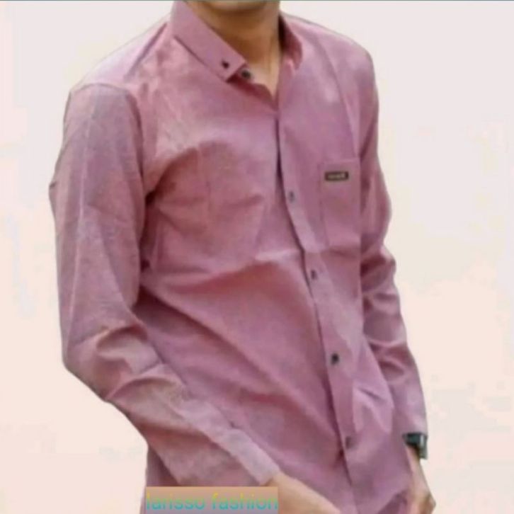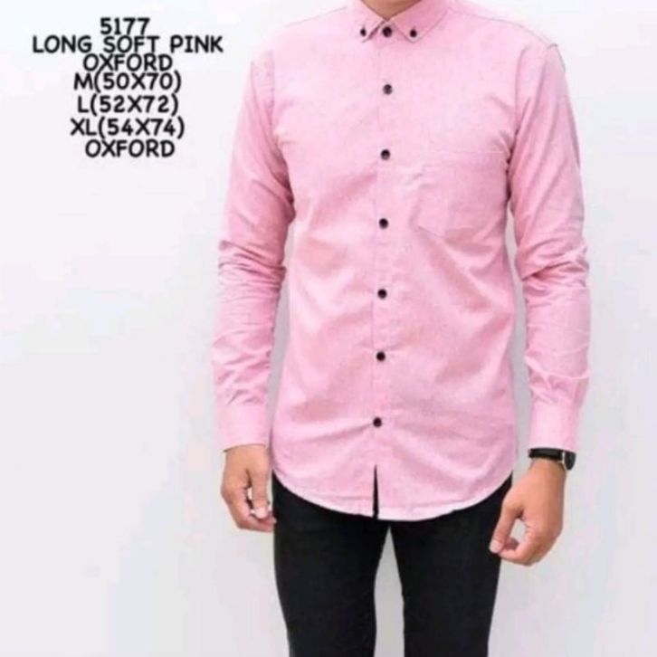 Kemeja Pria Polos Pink dusty Peach Oxford Lengan Panjang