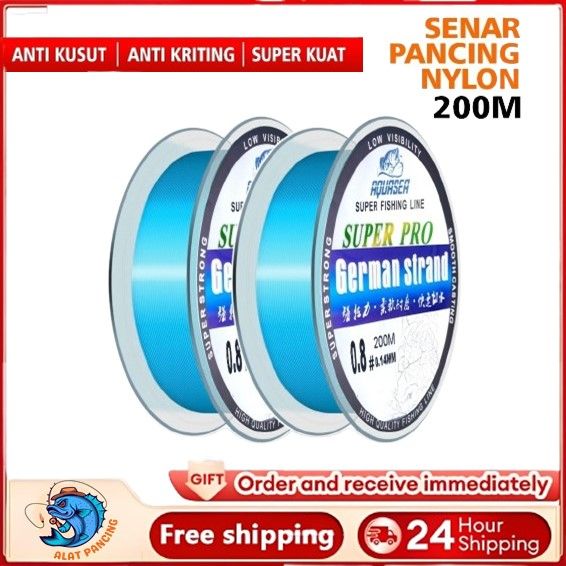 Senar Tali Pancing 200m Germany Warna Biru Fishing Line Senar Pancing Premium Invisible Bahan Nilon Tahan Lama Panjang