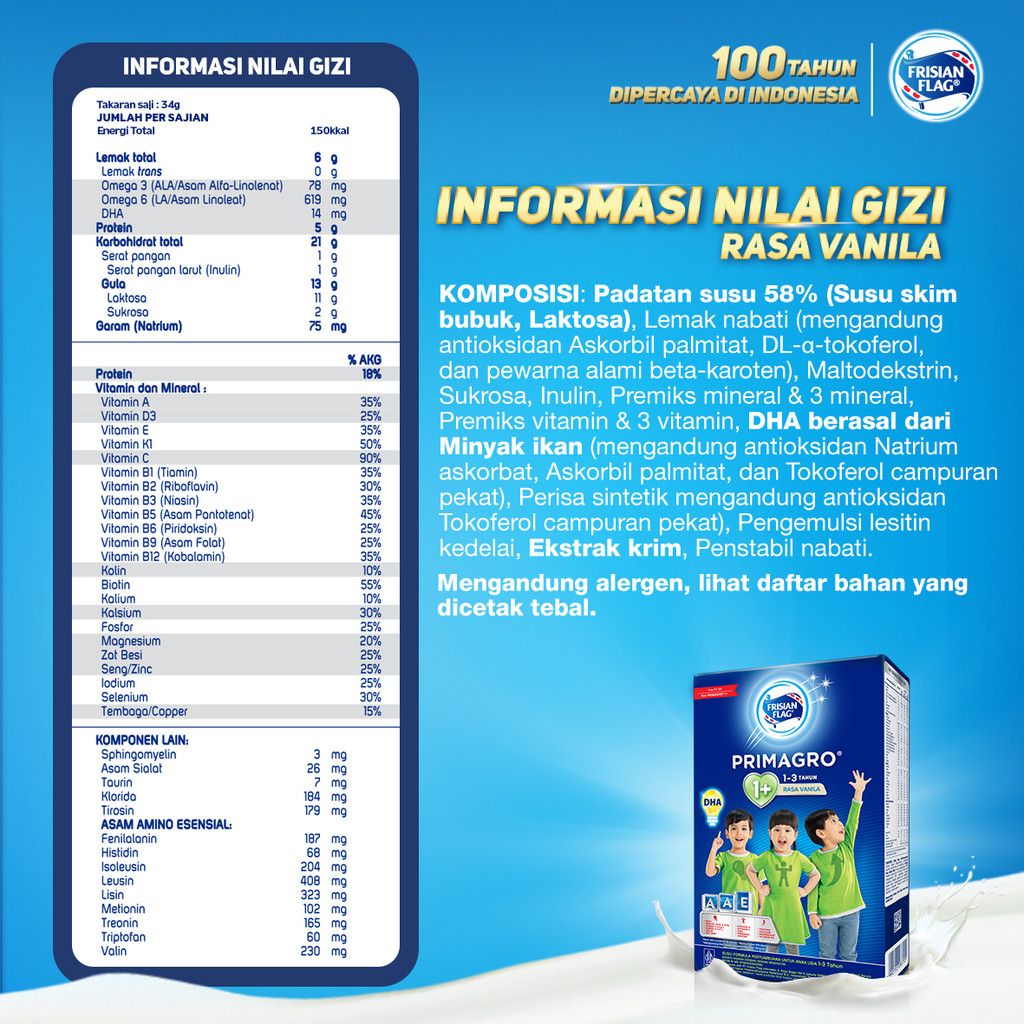 Frisian Flag Primagro 3+ Vanilla 1200 gr Susu Formula Pertumbuhan Anak