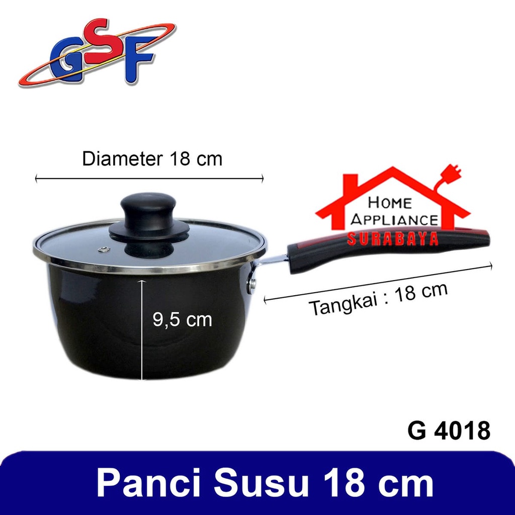 PANCI SUSU SAUS - SAUCE PAN ENAMEL ANTI LENGKET + TUTUP KACA 18 CM GSF G 4018