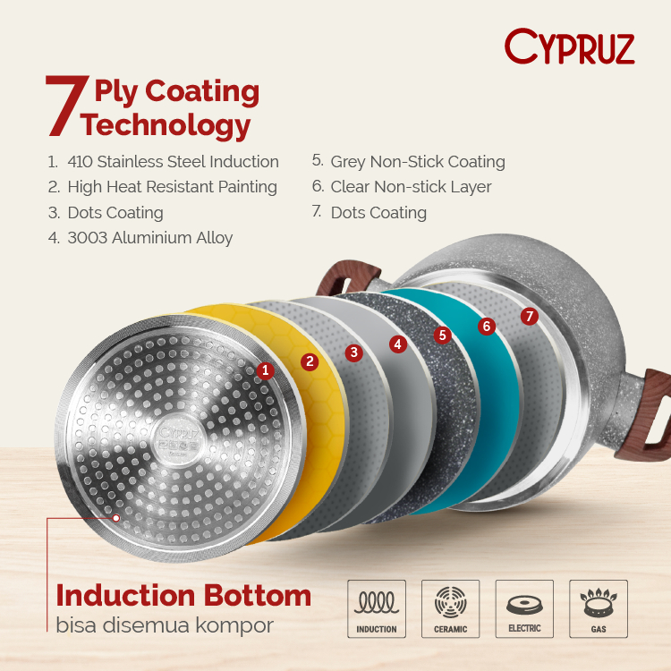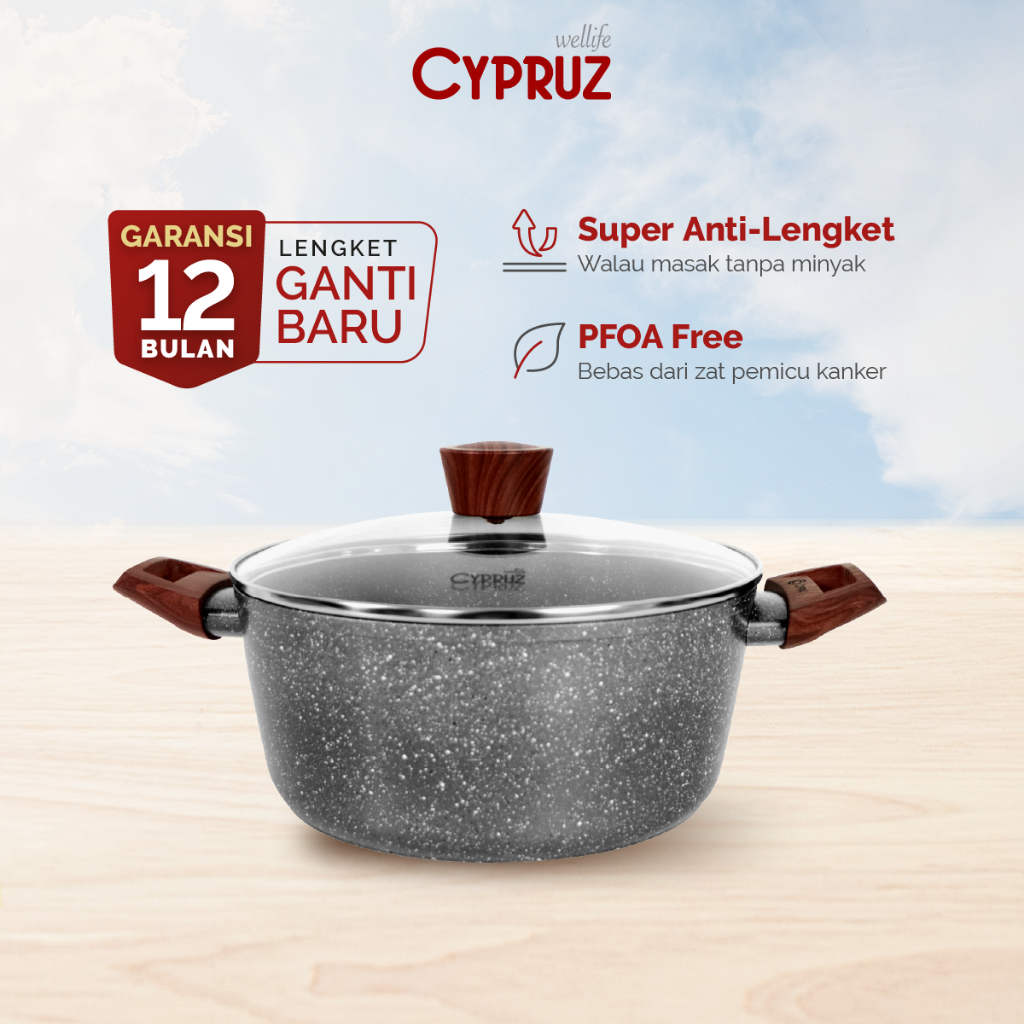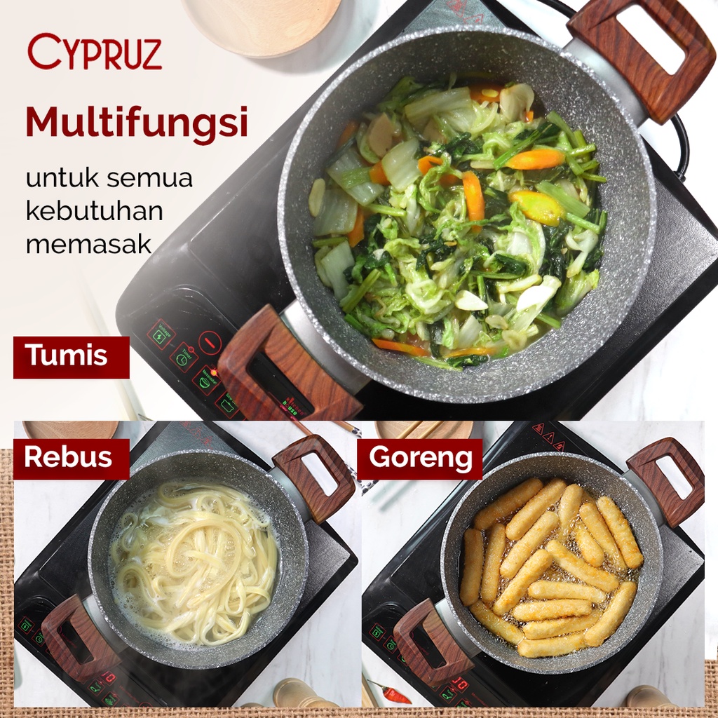 CYPRUZ CASSEROLE PAN STOCK POT MARBLE SERIES PANCI ANTI LENGKET DENGAN TUTUP 20CM