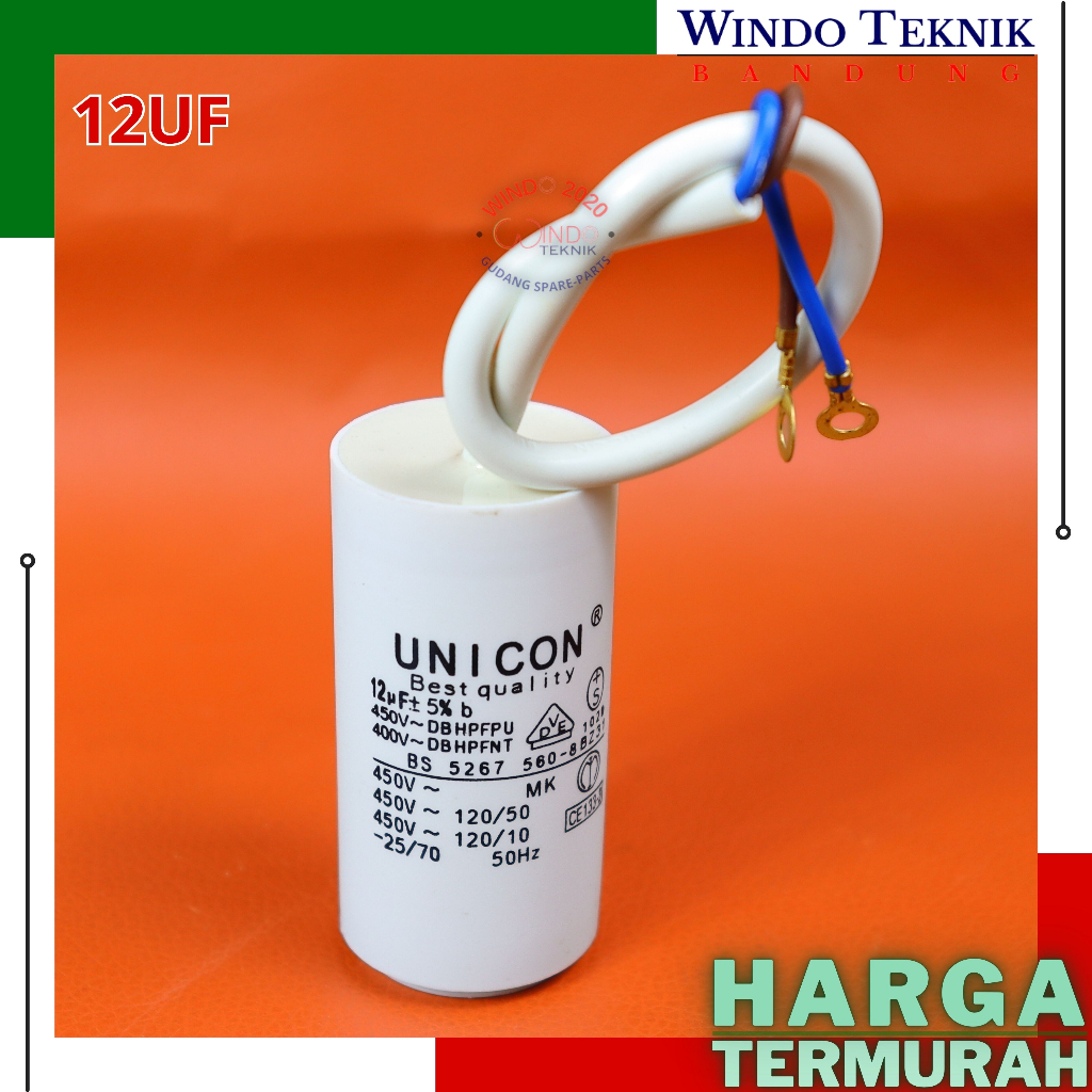 KAPASITOR 12UF BULAT SINGLE UNICON | ELCO / CAPASITOR MESIN CUCI / POMPA AIR 12 UF MIKRO-FARAD - WINDO