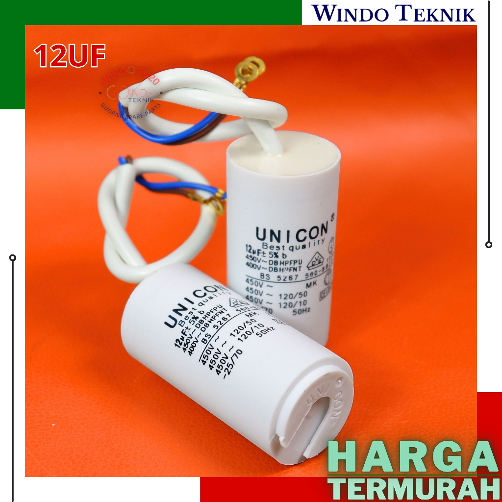 KAPASITOR 12UF BULAT SINGLE UNICON | ELCO / CAPASITOR MESIN CUCI / POMPA AIR 12 UF MIKRO-FARAD - WINDO