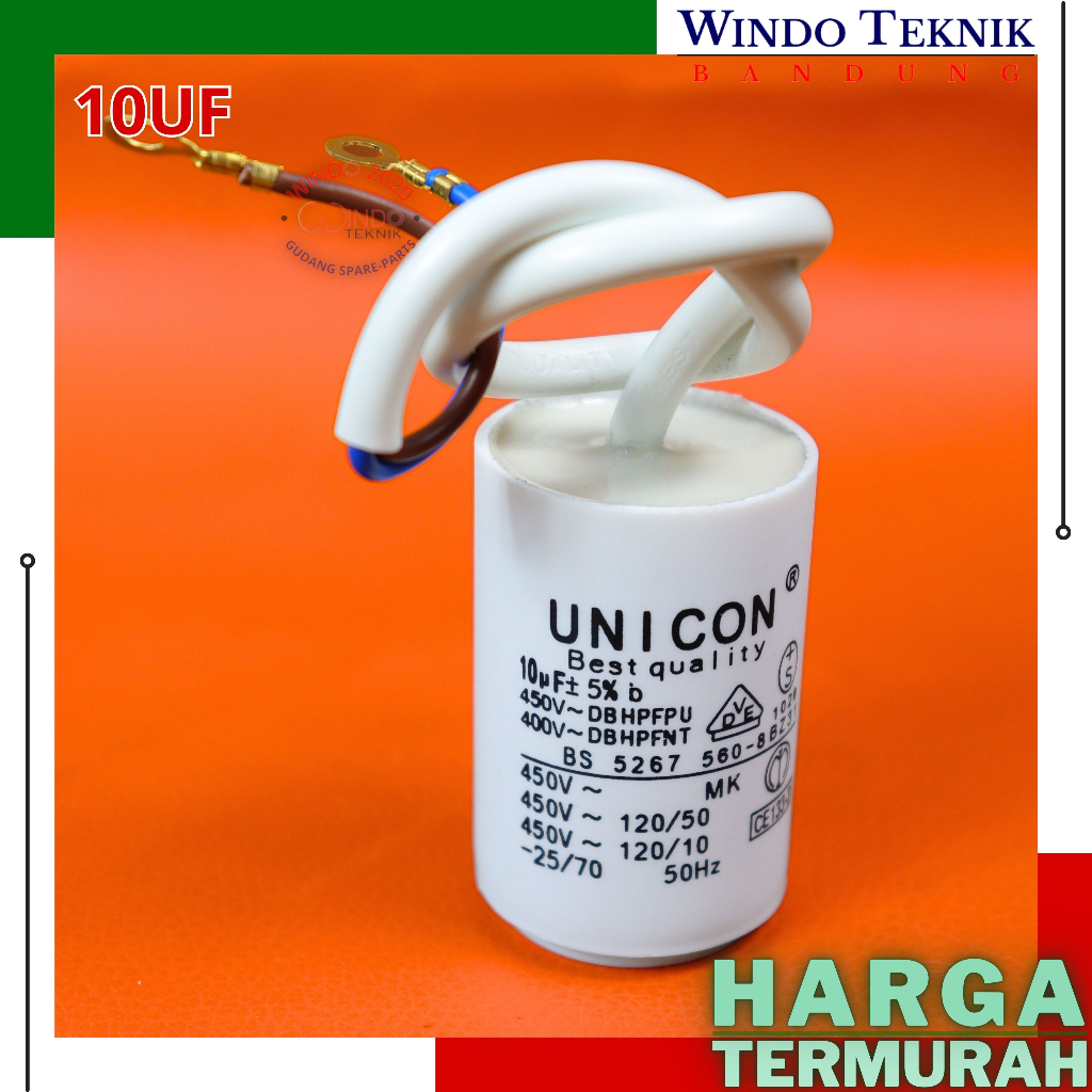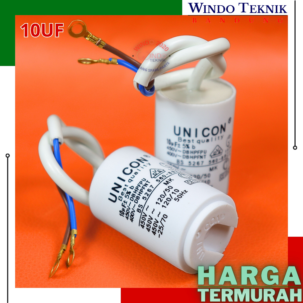 KAPASITOR 10UF BULAT SINGLE UNICON | ELCO / CAPASITOR MESIN CUCI / POMPA AIR 10 UF MIKRO-FARAD - WINDO