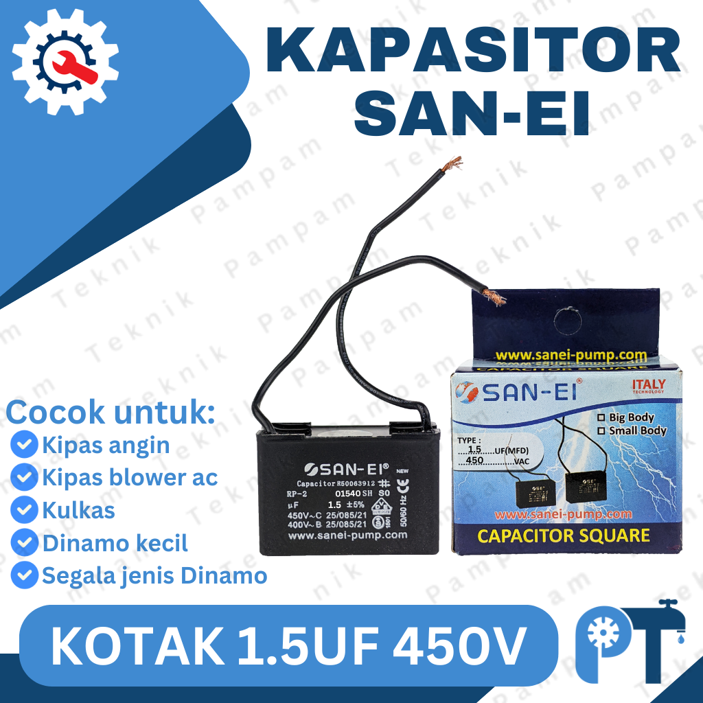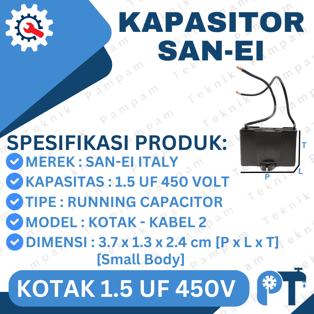 KAPASITOR 1.5UF 450V SANEI KOTAK CAPACITOR SAN-EI 1.5 UF MIKRO 450 VOLT | CAPASITOR KIPAS ANGIN