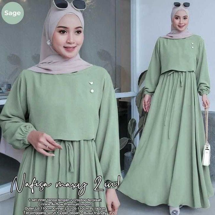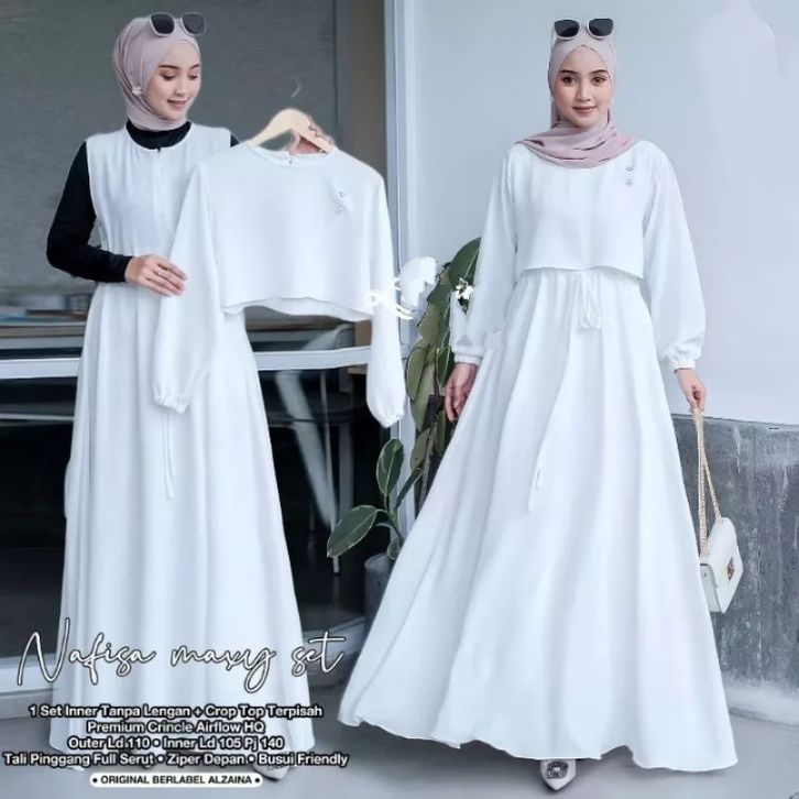 Gamis Set Inner Outer Wanita Outfit Kekinian Pakaian Perempuan Muslimah Setelan Daleman Outwear Bahan Crinkle Airflow