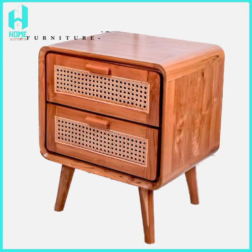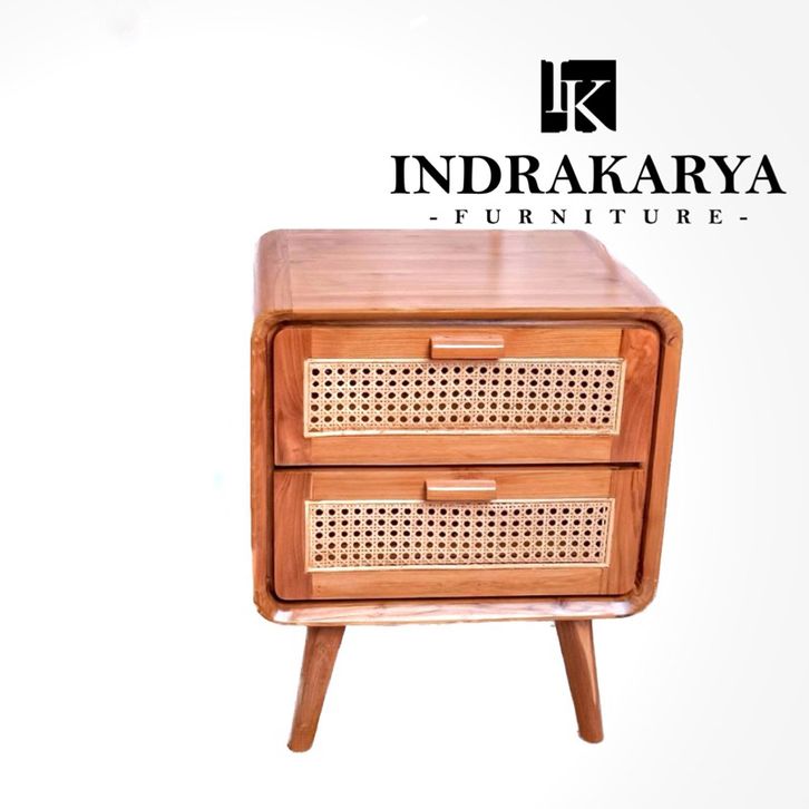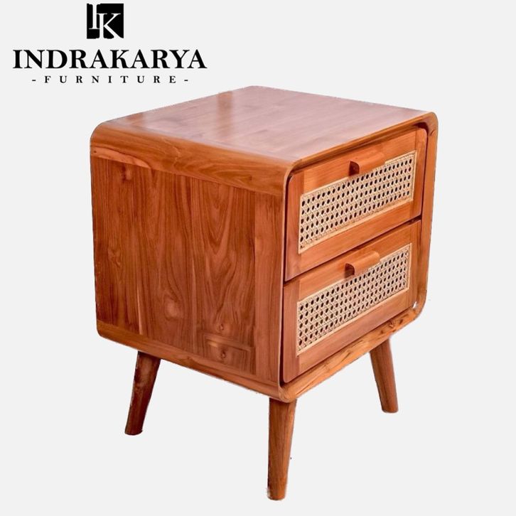 Meja Nakas Rotan/Meja Nakas Minimalis/Bedside Table/Side Table/Night stand Kayu Jati Solid Jepara