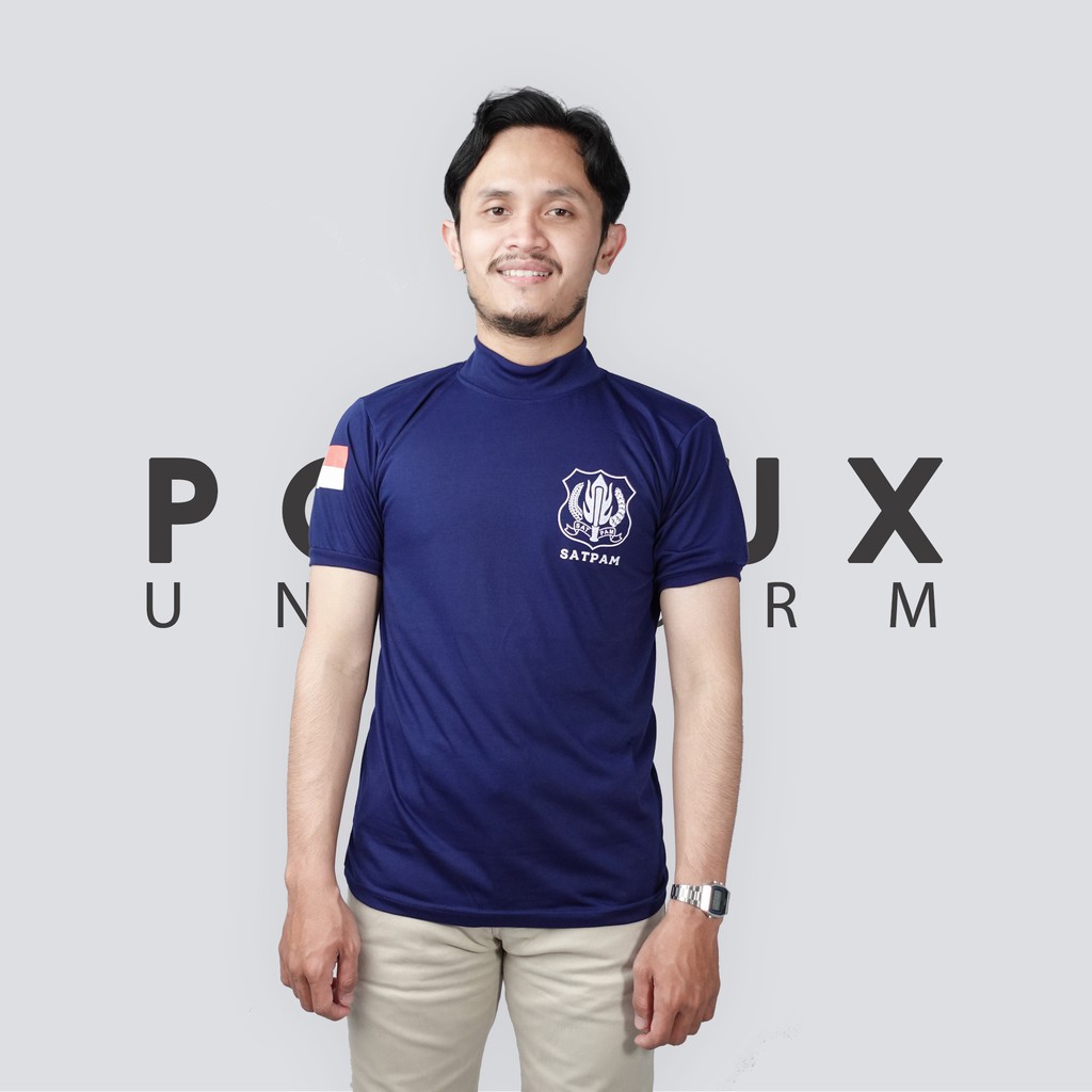 Kaos Dalam Dinas Security / Satpam Tangan Pendek Kerah Tinggi Warna Coklat Hitam Navy Model Slimfit