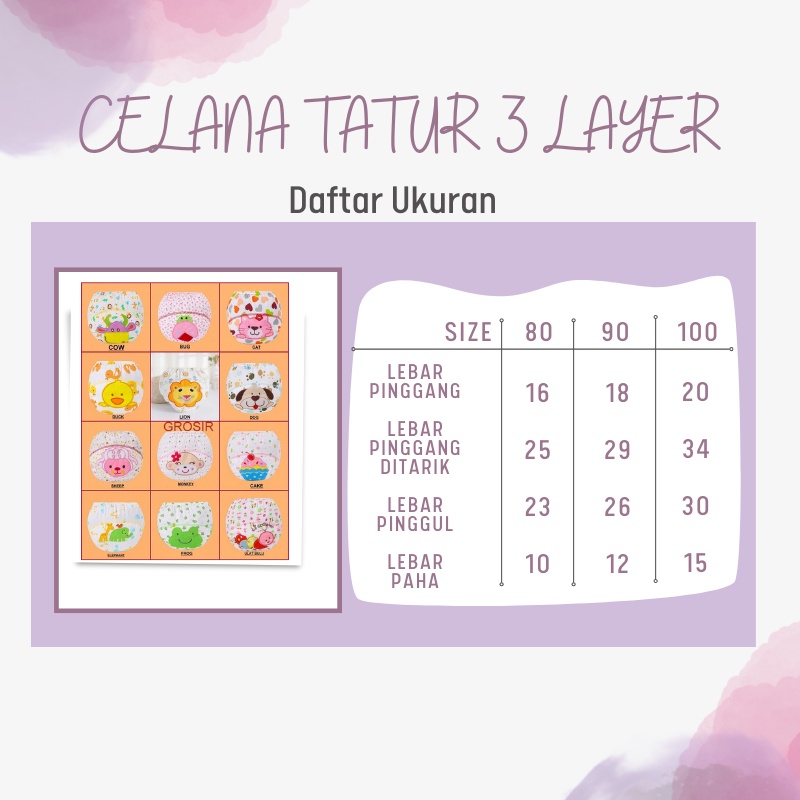 CELANA DALAM TATUR POPOK CLOTH DIAPER CLODI TRAINING PANTS PIPIS BAYI ANAK BABY 3 LAYERS