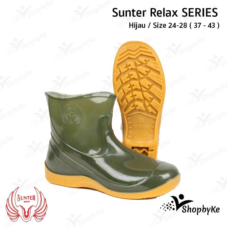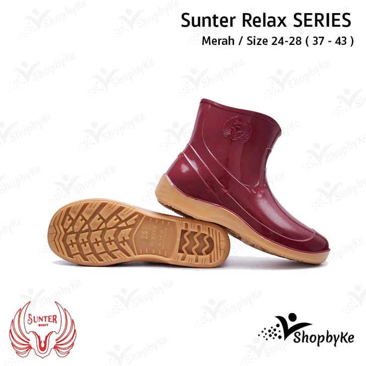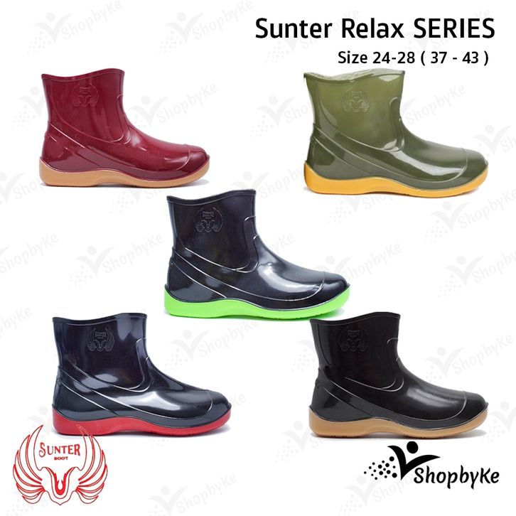 Sepatu Boots Karet Pendek Sunter RELAX SERIES Warna Hijau, Maroon, Hitam Sol Merah dan Hitam Sol Penthel Glossy