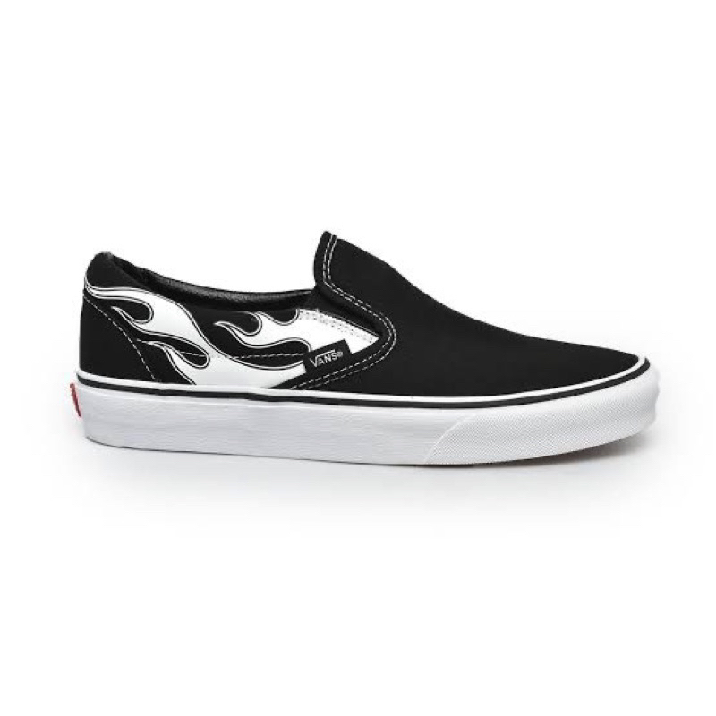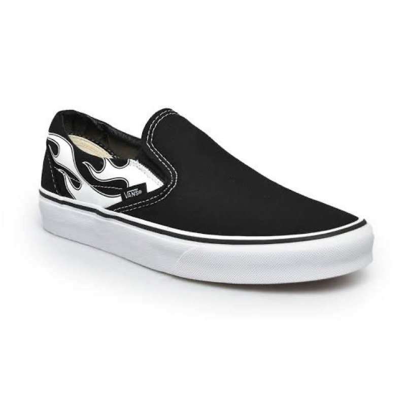 VANS SLIP ON FLAME BLACK WHITE ORIGINAL