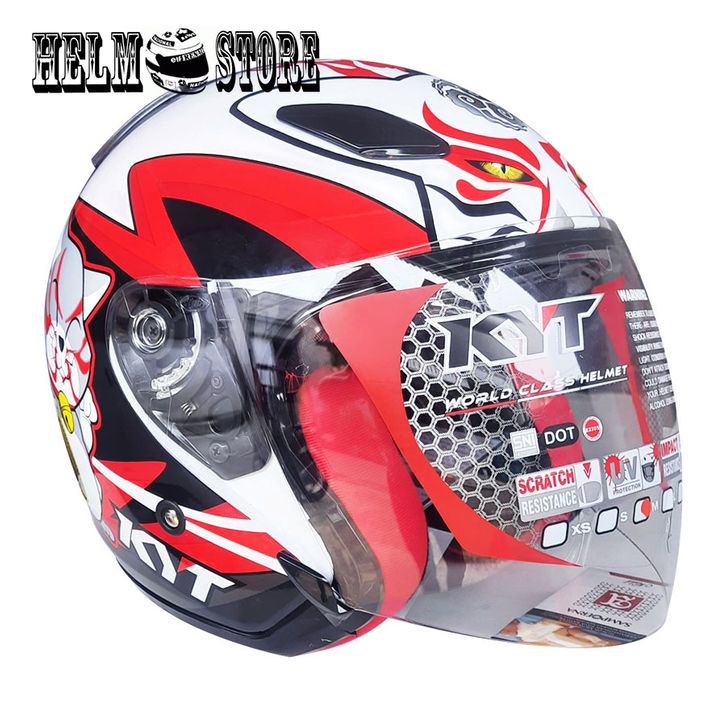 HELM KYT DJ MARU MOTIF KABUKI CAT WHITE