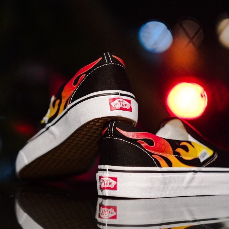 VANS SLIP ON FLAME BLACK TRUE WHITE ORIGINAL