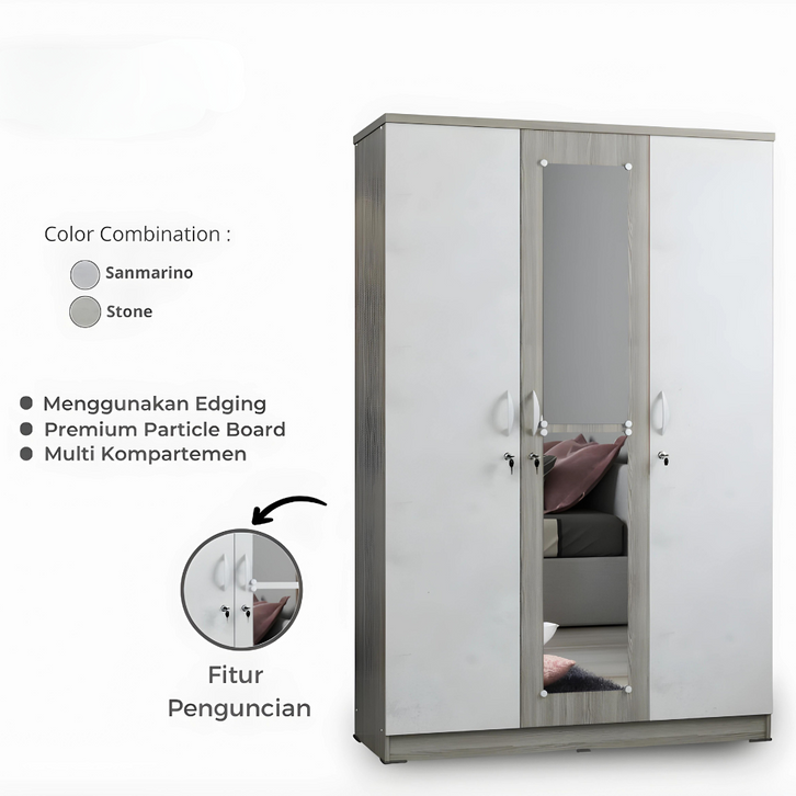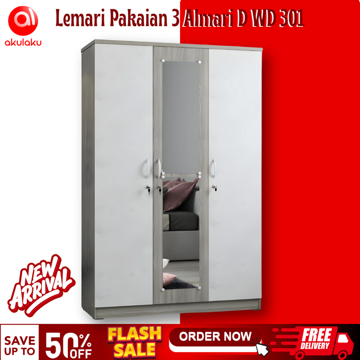 LEMARI PAKAIAN 3 PINTU WD 301 LEMARI BAJU LEMARI PENYIMPANAN PAKAIAN 3 PINTU SIMPLE MINIMALIS