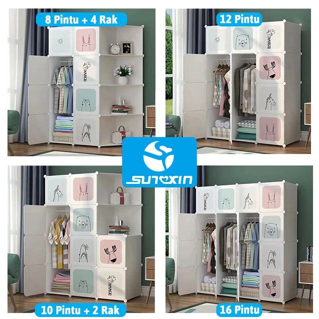 SUNXIN - LEMARI PLASTIK PAKAIAN DIY / WARDROBE / RAK BAJU ANIMAL CHARACTER