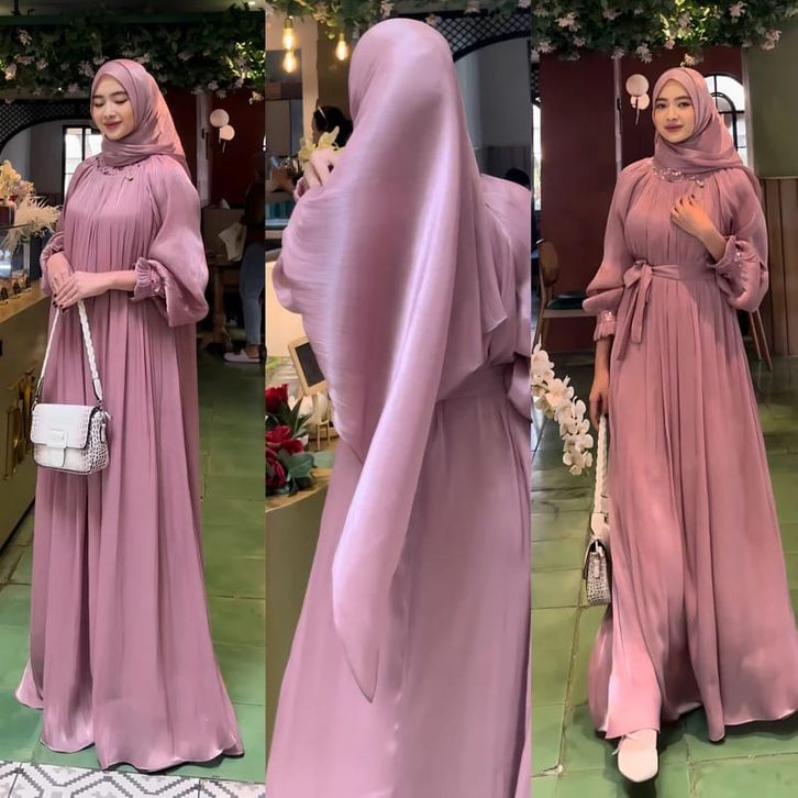 VALLINA OUTFIT - MADDINA MAXY DRESS GAMIS SHIMMER MUSLIM KONDANGAN POLOS BASIC PREMIUM MODERN KEKINIAN MURAH ORIGINAL