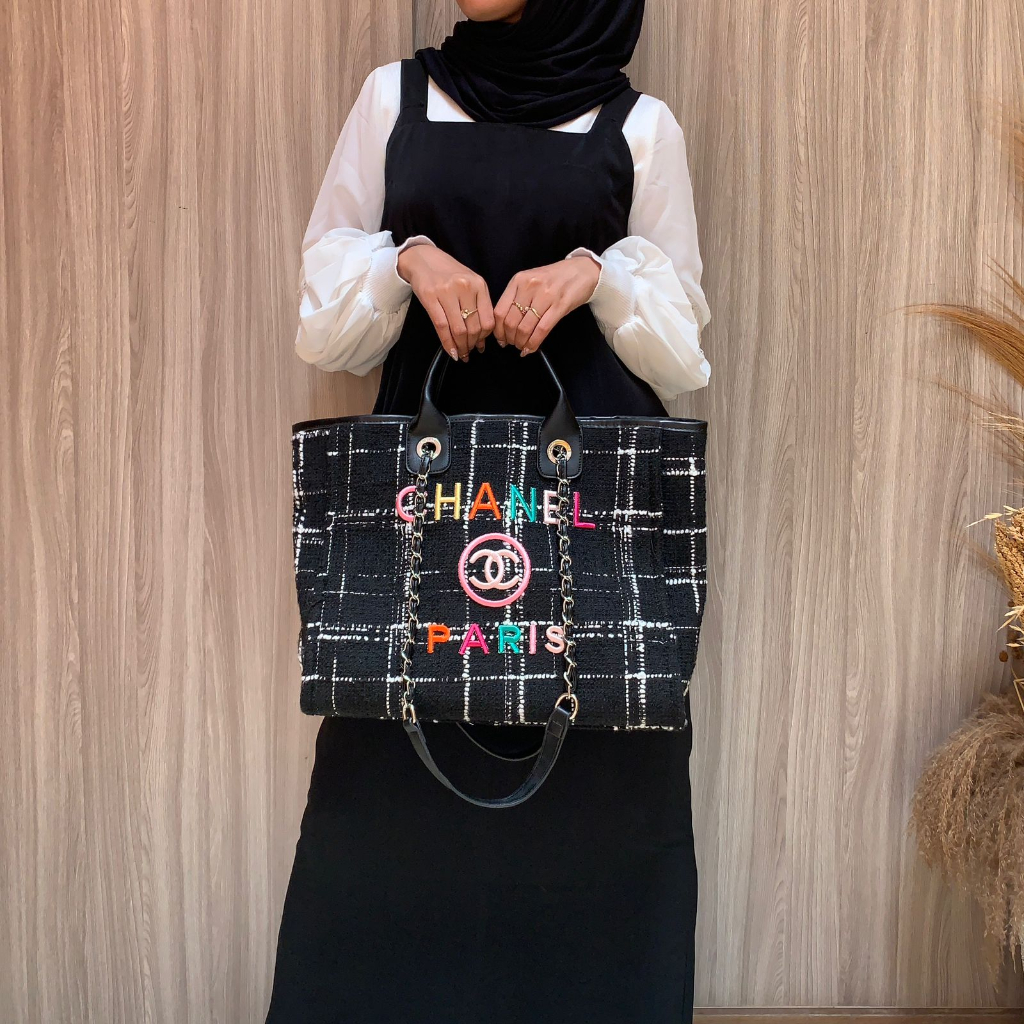 LX2359 TAS TOTE WANITA CAMBON CANVAS BORDIR PELANGI FREE LONGSTRAP + DUSTBAG PREMIUM KUALITAS PLATINUM 1:1