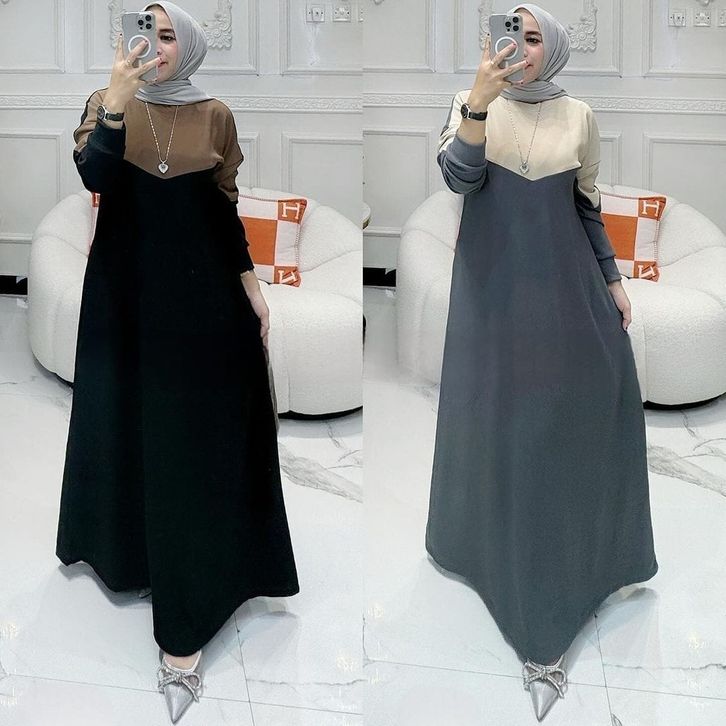 VALLINA OUTFIT - WILONA KNIT MAXY DRESS TWO TONED CARAMEL KNITT PREMIUM GAMIS WANITA MUSLIM DAILY LEBARAN MURAH ORIGINAL