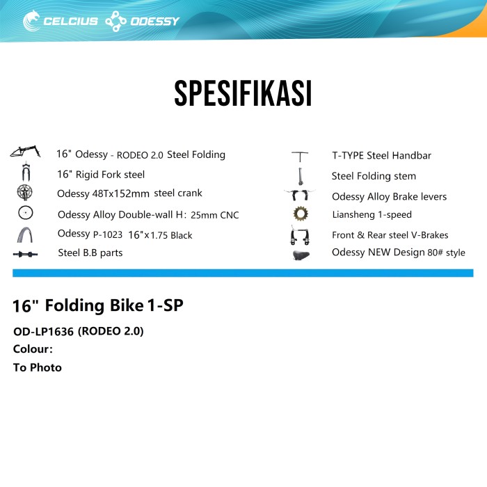 SEPEDA LIPAT | FOLDING BIKE ODESSY RODEO 2.0 - 1 SPEED GARANSI - BIRU, 16
