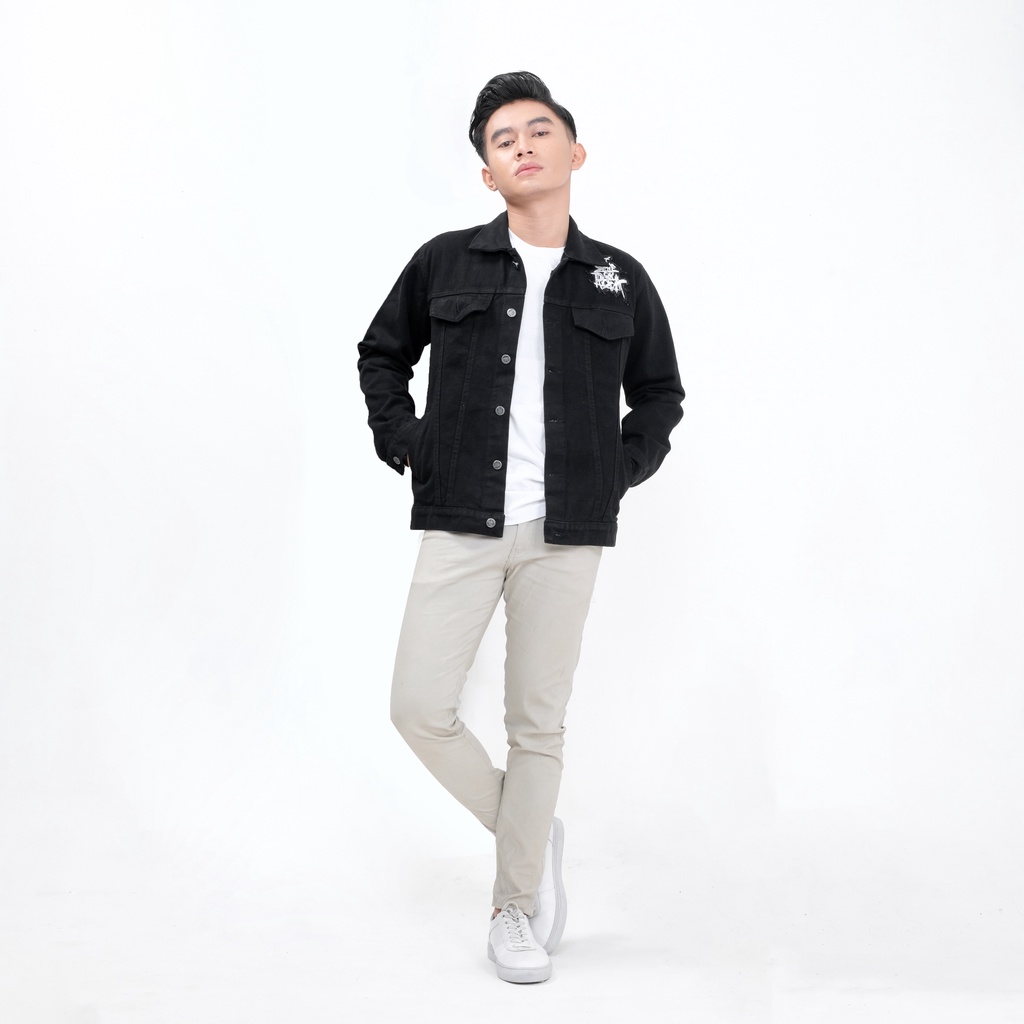 JAKET JEANS DENIM BORDIR EMBLEM PRIA - BMTH BALCK