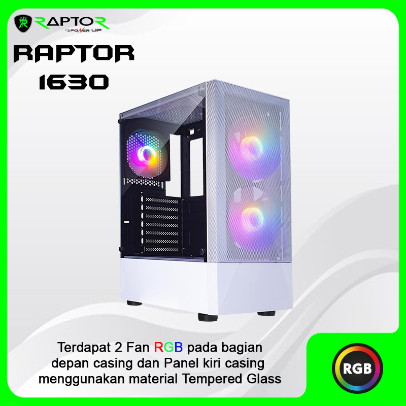 CASING GAMING CASE RAPTOR BLACK STRIKE 1631 FREE 3 FAN RGB - TEMPERED GLASS