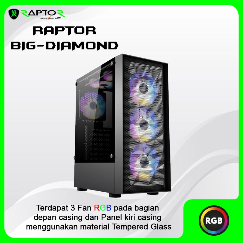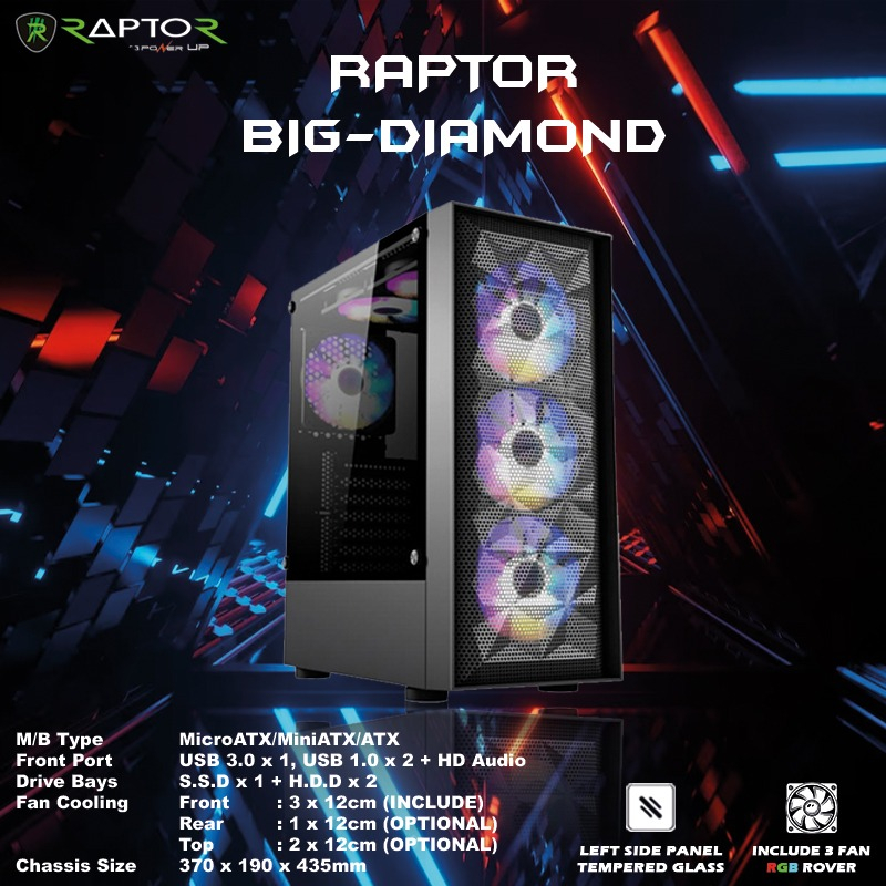 CASING GAMING RAPTOR BIG DIAM0ND - INCLUDE 3 FAN RGB ROVER