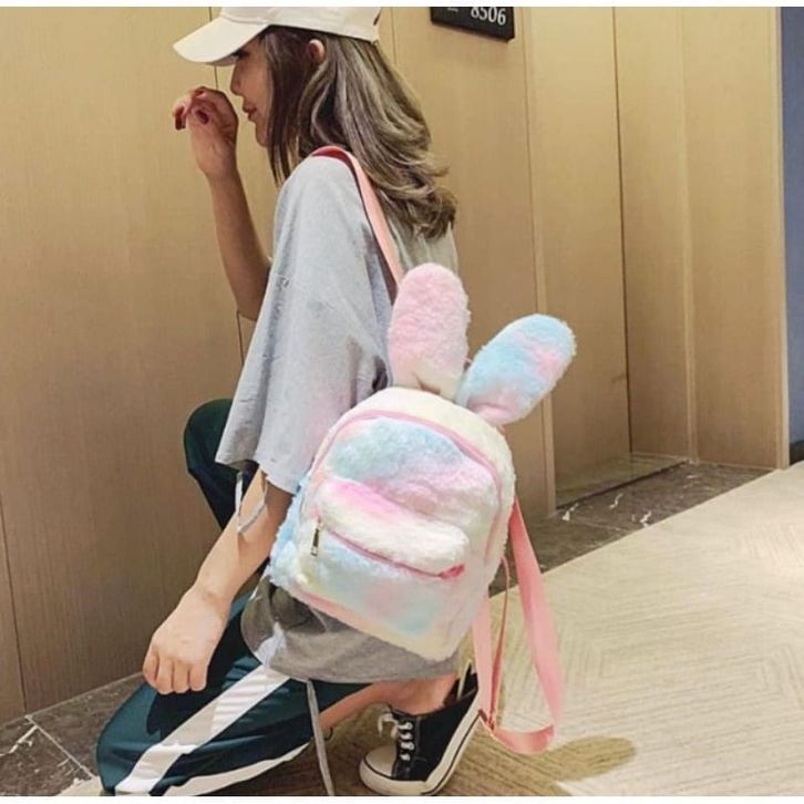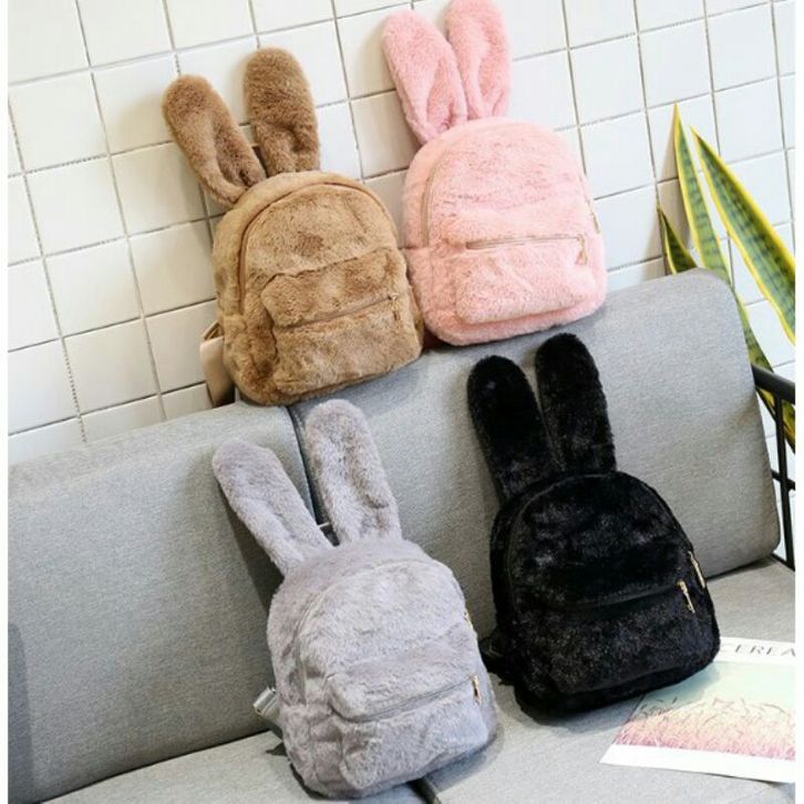 Tas Ransel Stylis Bulu Tas Wanita Lucu Korea Style Blur Fur Beauty Backpack Lucu Ada Kuping Kelinci Sekolah Kerja Kuliah