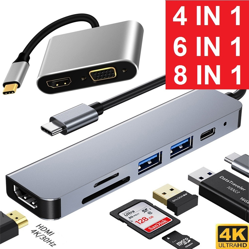 USB HUB TYPE C TO MULTI CONVERTER PORT HUB VGA USB3.0 HDMIPORT ADAPTER USB C MICRO SD 4IN1 6IN1 8IN1