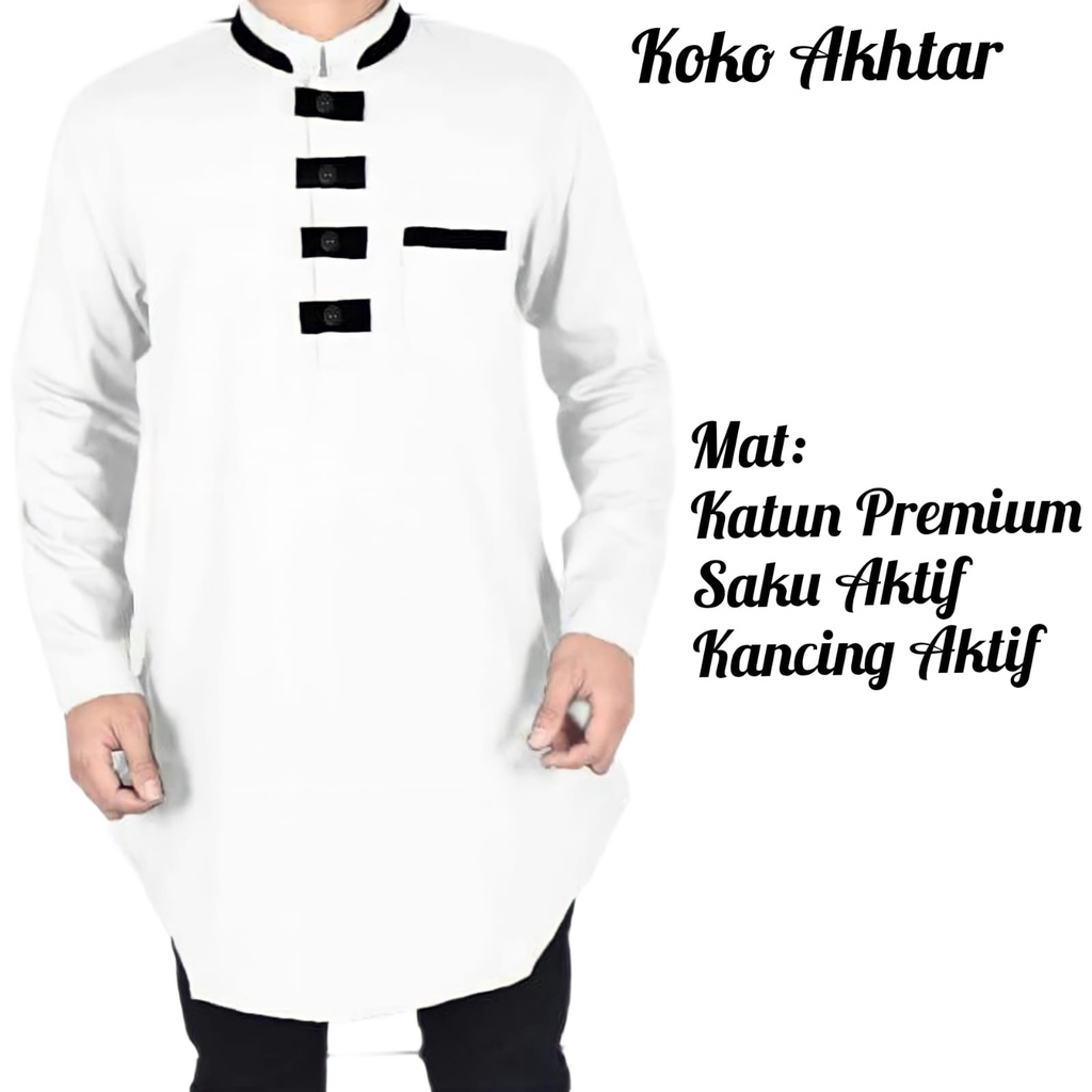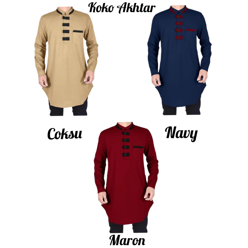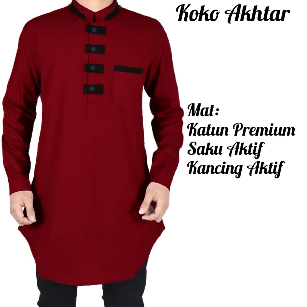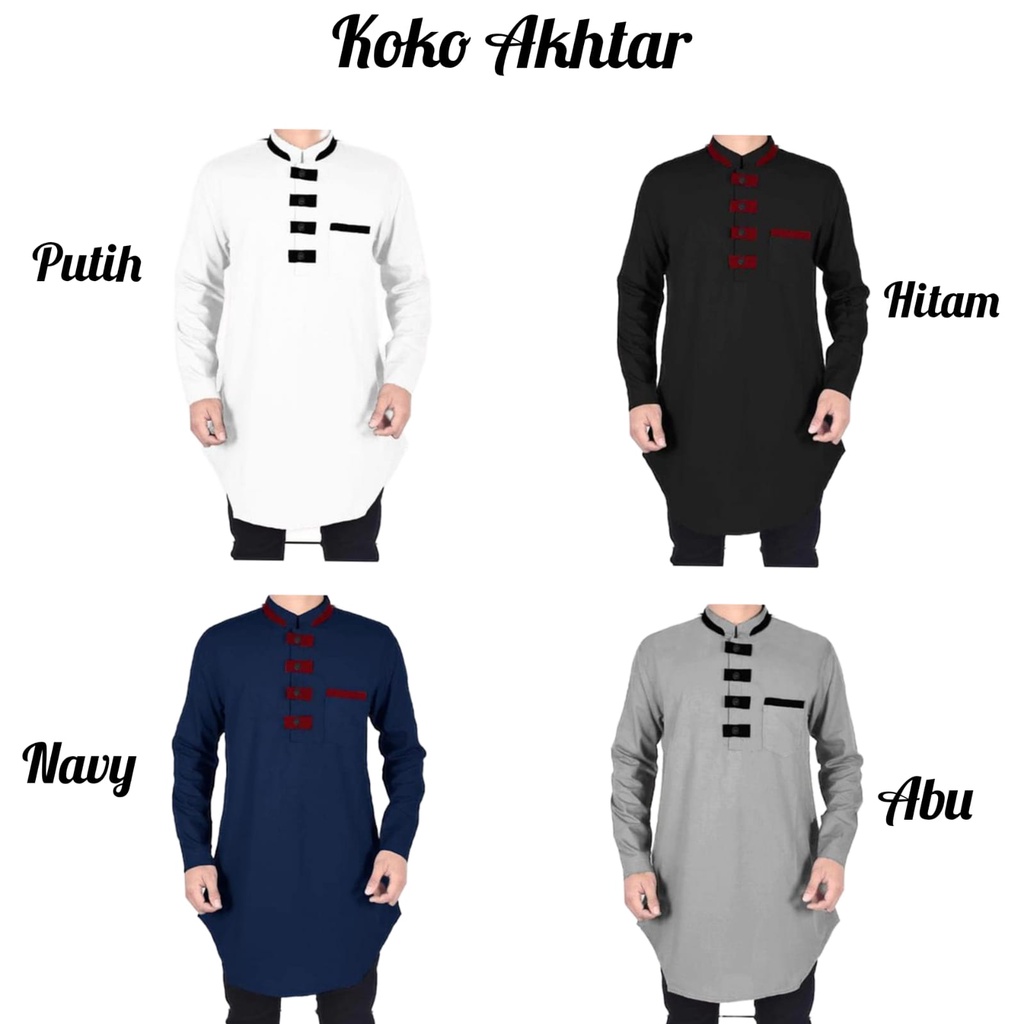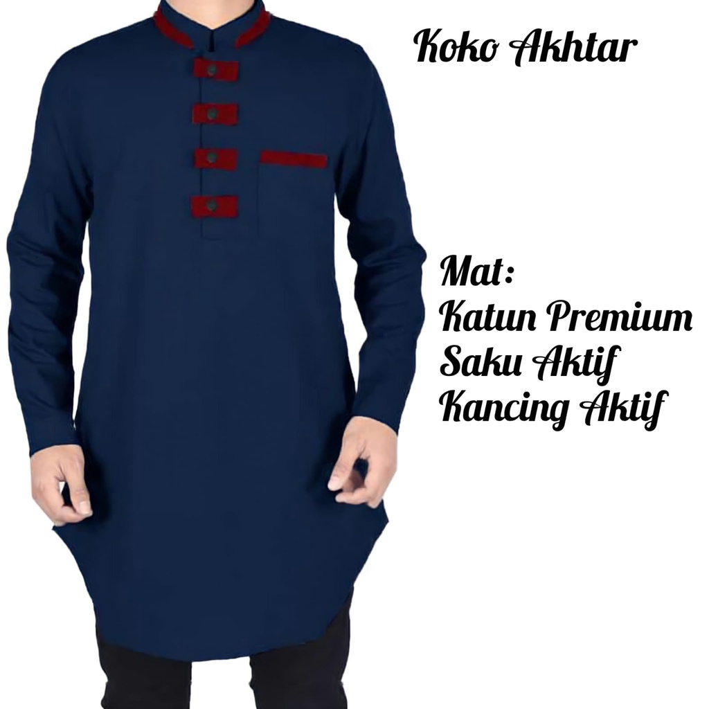 BAJU KOKO AKHTAR BAJU MUSLIM LAKI-LAKI PRIA DEWASA LENGAN PANJANG BAHAN KATUN ADEM MOTIF KOMBINASI MODEL PAKISTAN