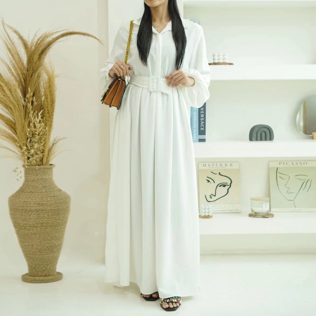 GDTIMA NOURA LONG SLEEVE BELT DRESS KOREAN GAMIS KERAH GAMIS LENGAN BALON GAMIS SYARI GAMIS KANCING DEPAN GAMIS POLOS