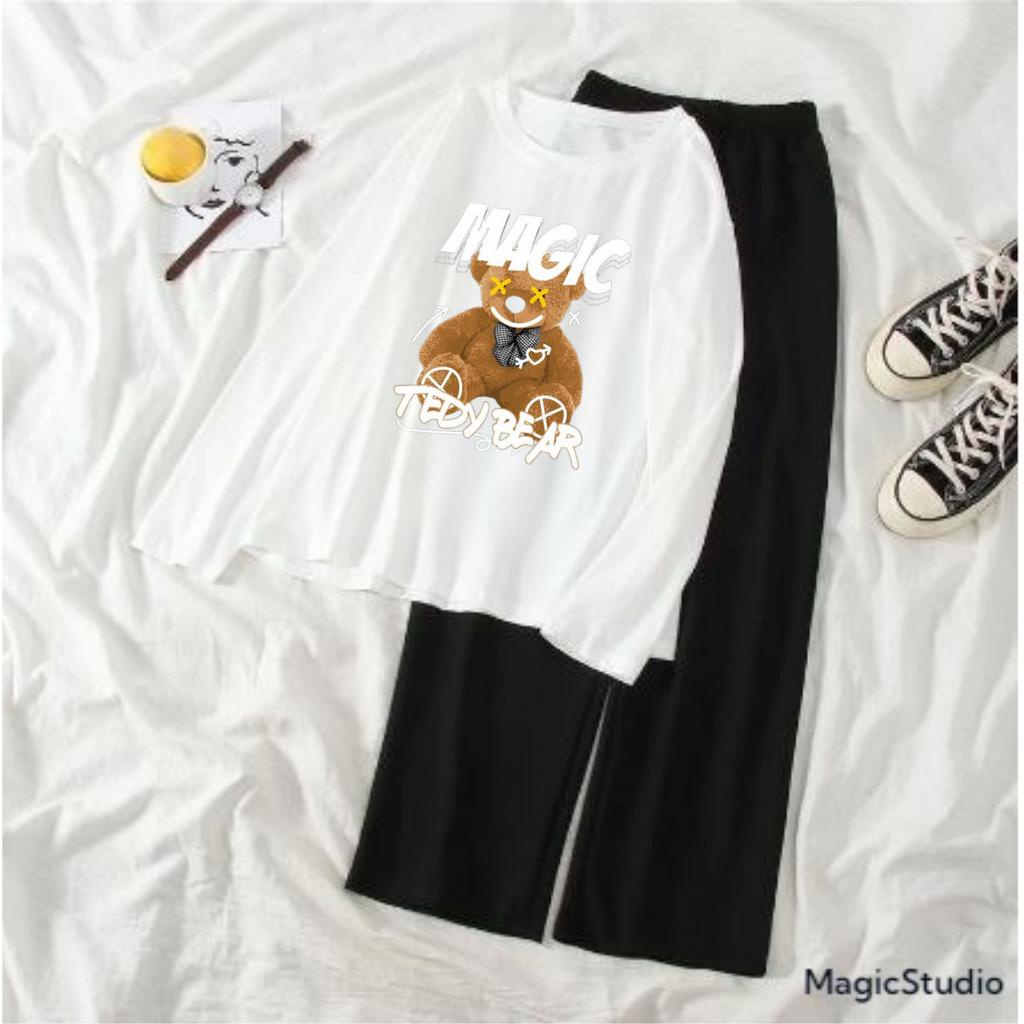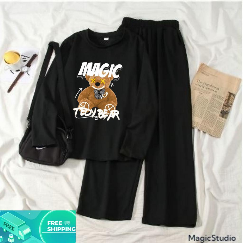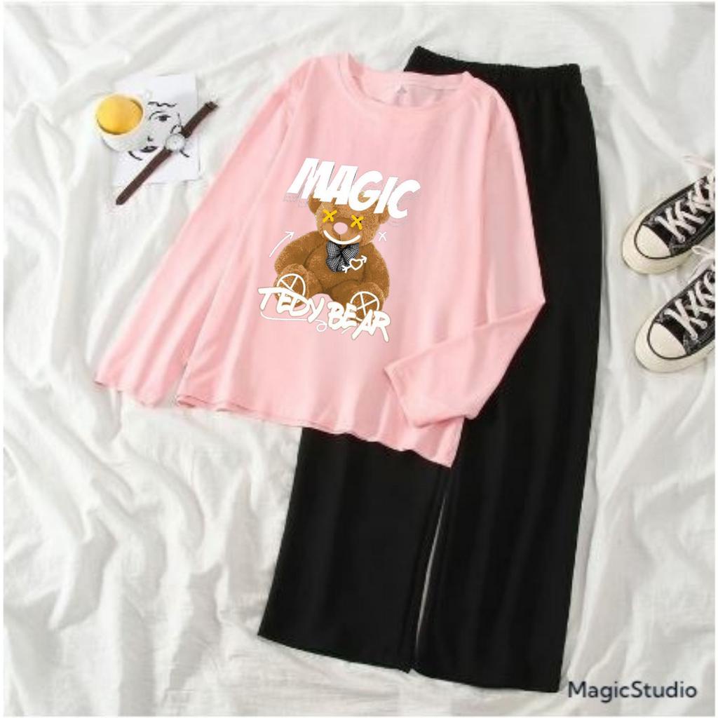 JBF PAKET PROMO SETELAN MOTIF TERLARIS MAGIC TEDDY BEAR SIZE M L ATASAN BAJU LENGAN PANJANG DAN CELANA KULOT