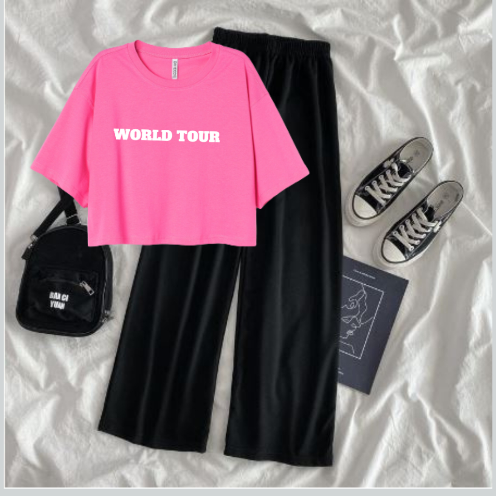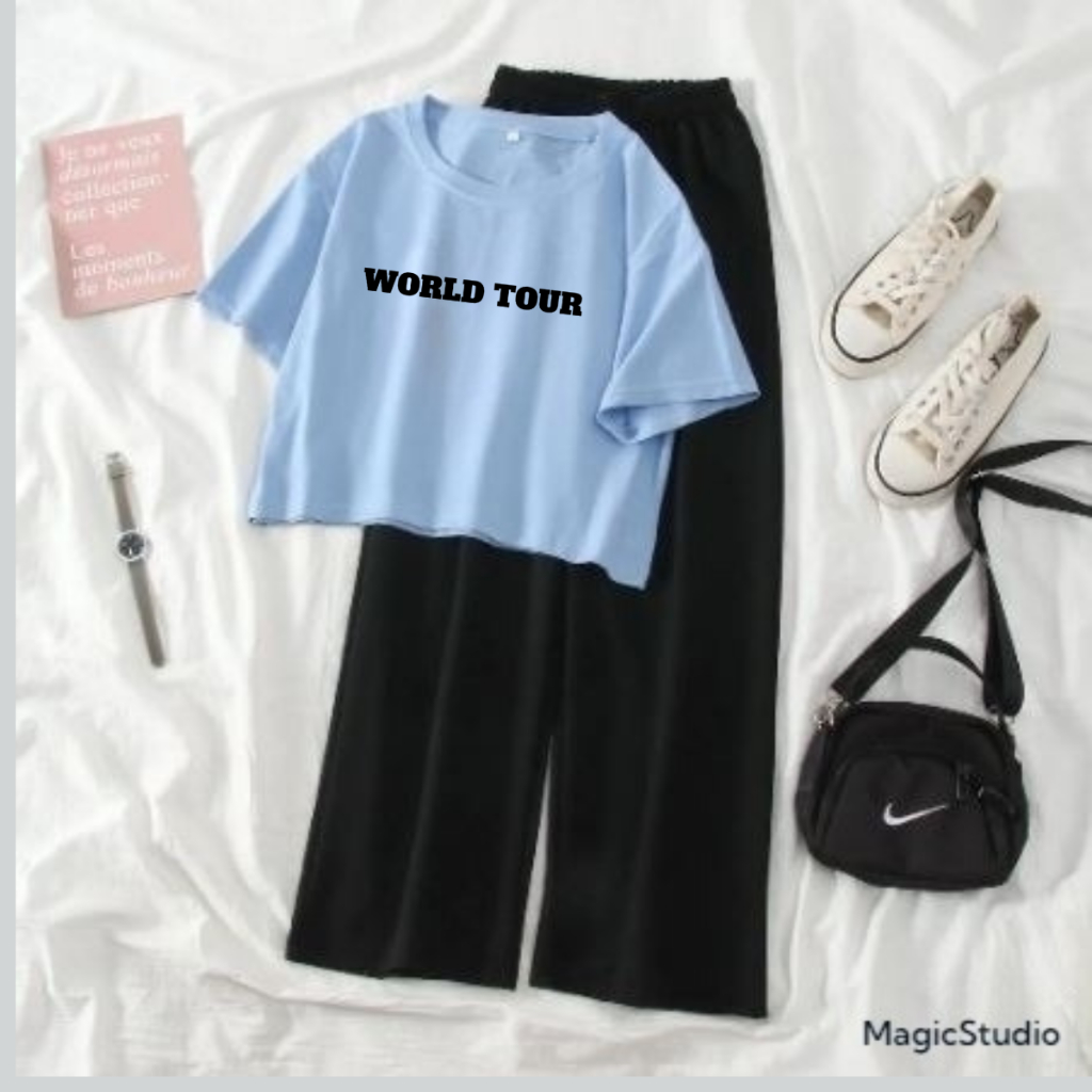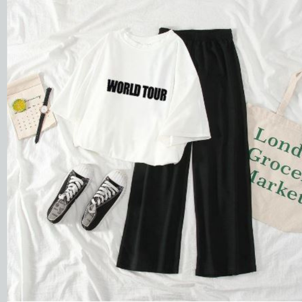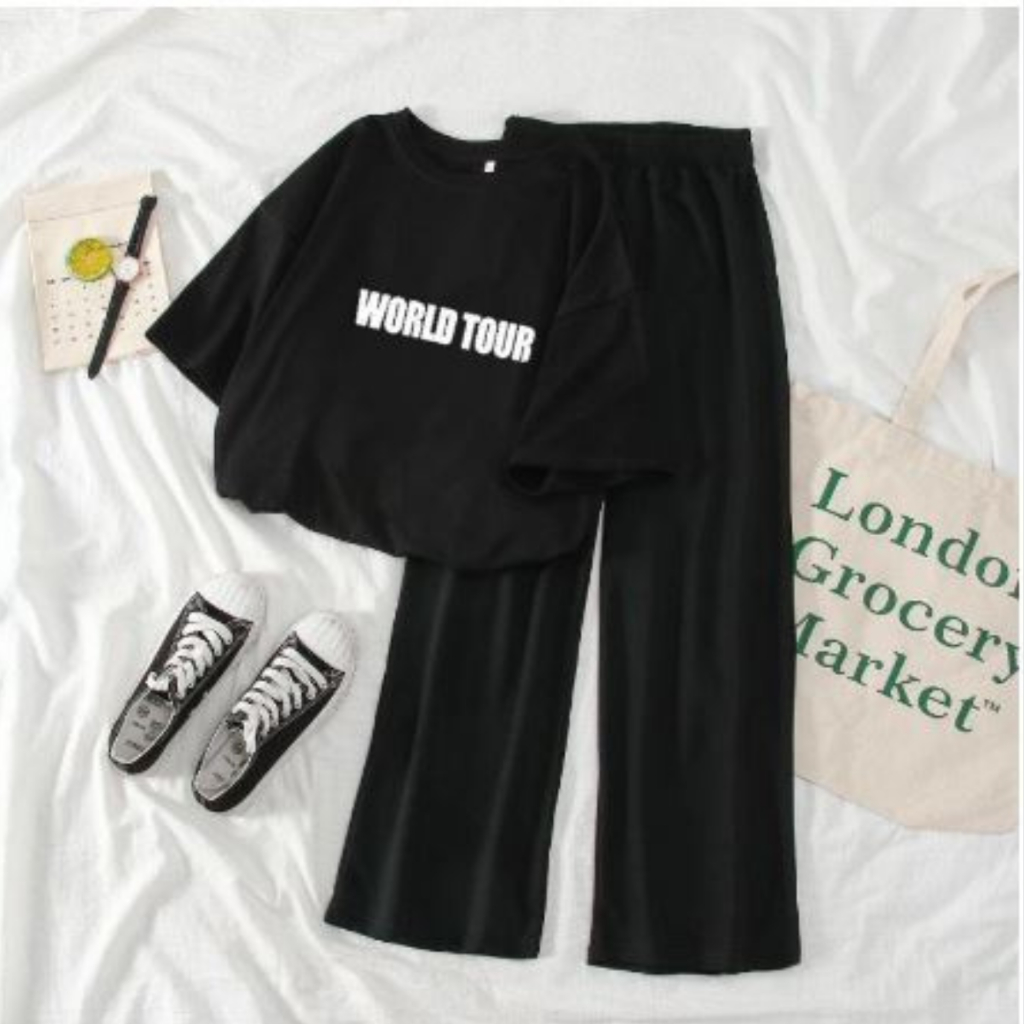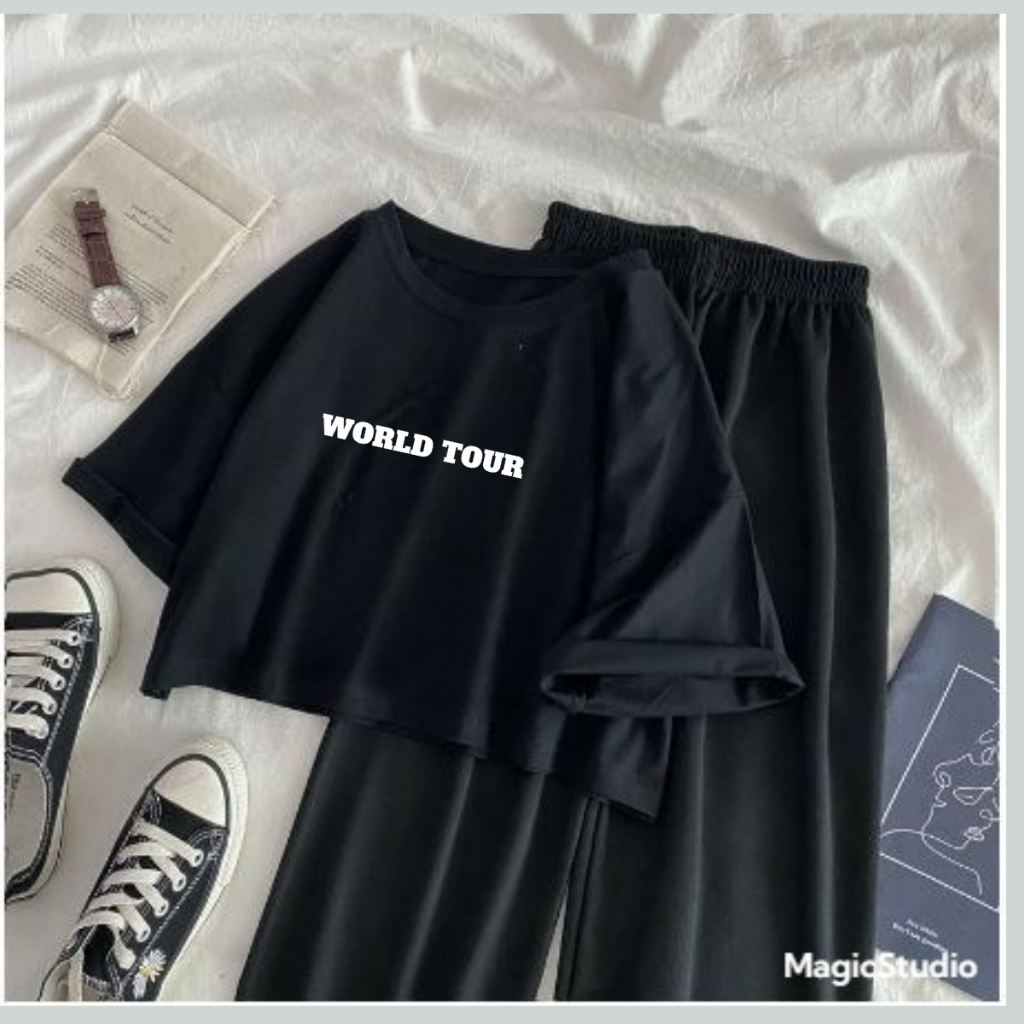 JBF ONE SET CROP CEWEK MODEL OVERSIZED LENGAN PENDEK WORLD TOUR BAJU 1 CELANA KULOT