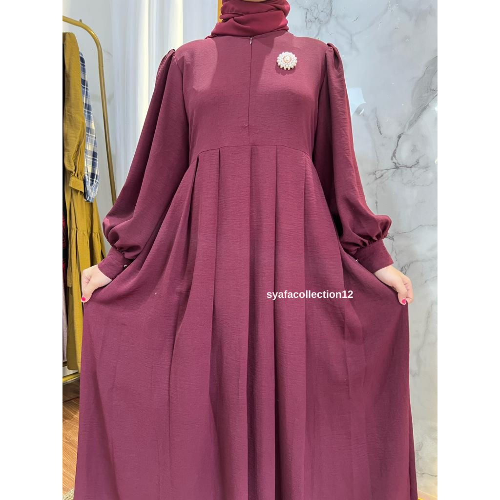 SYAFACOLLECTION ZASKIA DRESS KAIN CRINKLE GAMIS FORMAL MUSLIM FLOWY KANTONG AIRFLOW NYAMAN BALON
