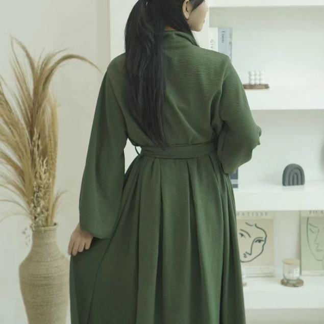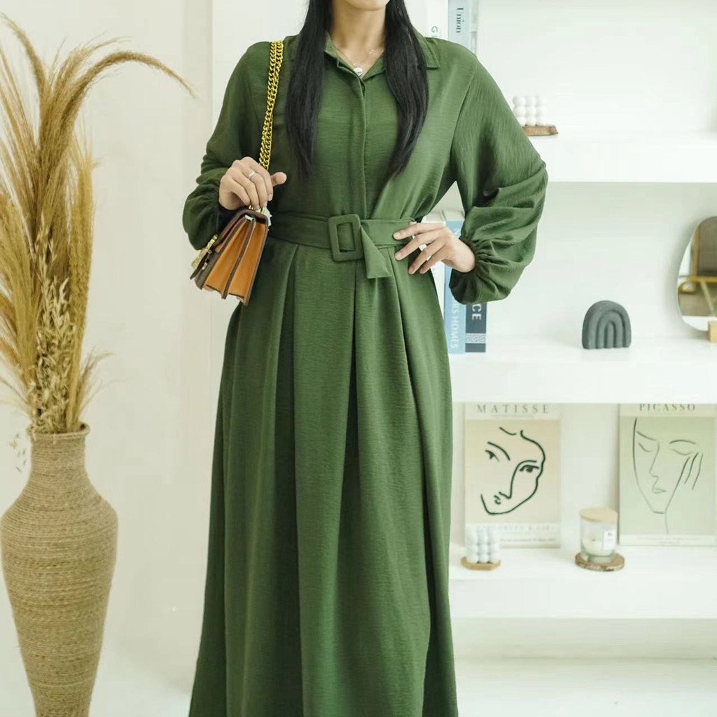 GDTIMA NOURA LONG SLEEVE BELT DRESS KOREAN GAMIS KERAH GAMIS LENGAN BALON GAMIS SYARI GAMIS KANCING DEPAN GAMIS POLOS