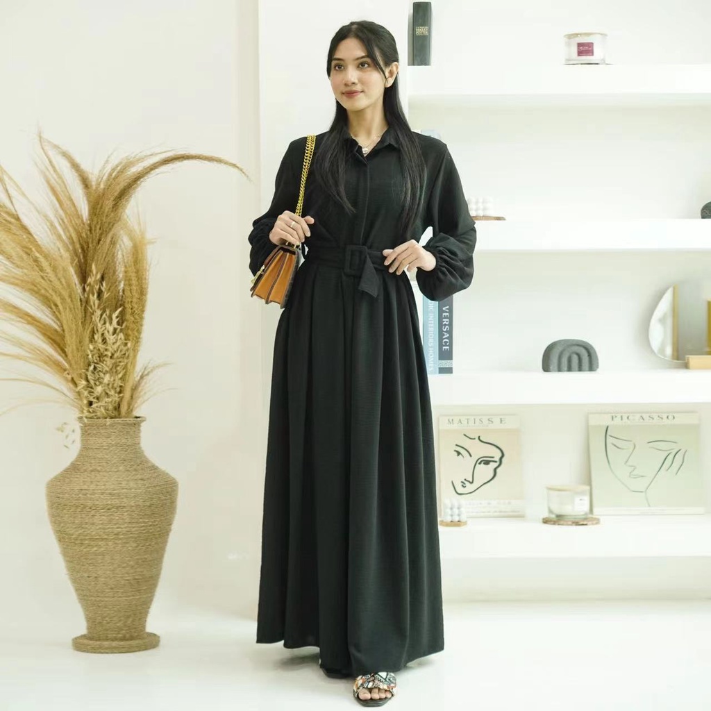 GDTIMA NOURA LONG SLEEVE BELT DRESS KOREAN GAMIS KERAH GAMIS LENGAN BALON GAMIS SYARI GAMIS KANCING DEPAN GAMIS POLOS