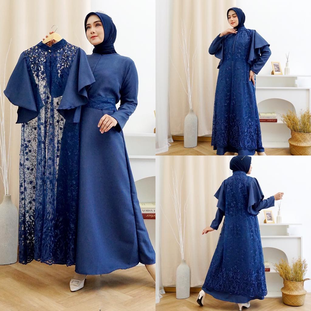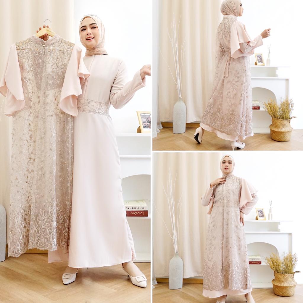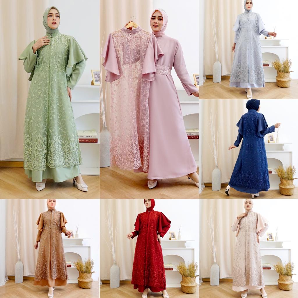 2IN1 GEORGINA DRESS INNER + OUTER BRUKAT TILLE PREMIUM FREE BELT SET GAMIS MAXI DRESS KONDANGAN PLUS OUTER BROKAT TILE