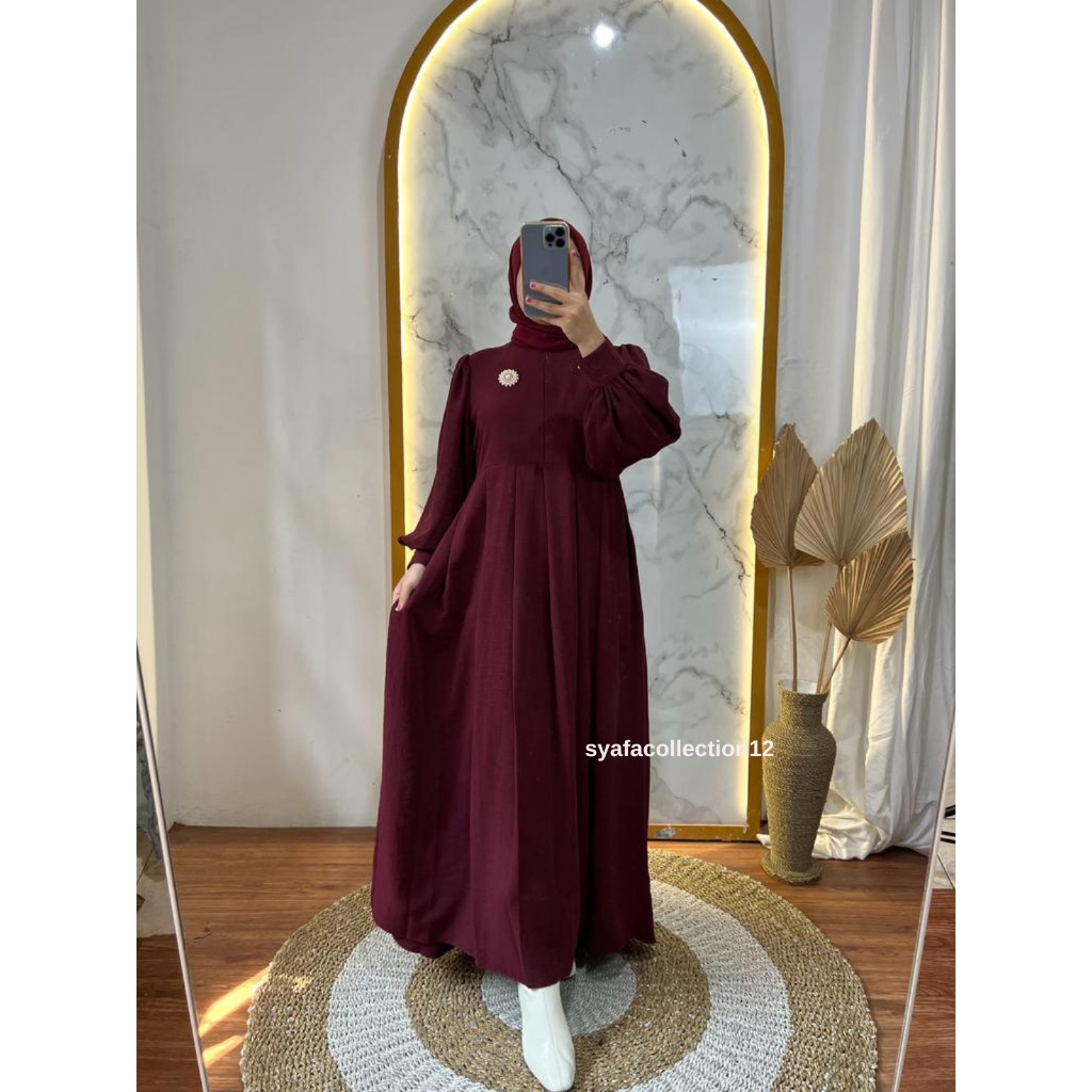 SYAFACOLLECTION ZASKIA DRESS KAIN CRINKLE GAMIS FORMAL MUSLIM FLOWY KANTONG AIRFLOW NYAMAN BALON