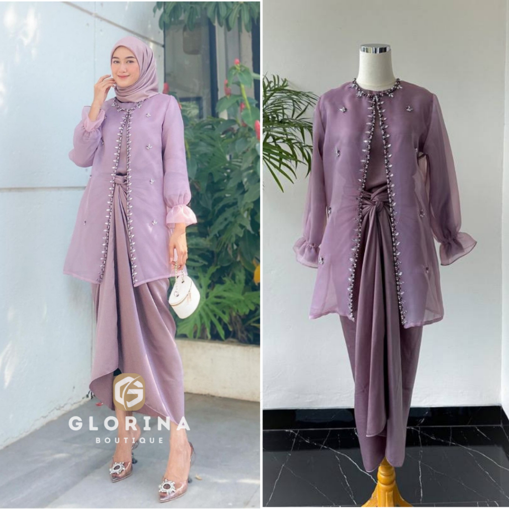 ONESET WANITA JEMMA ORGANZA PREMIUM OUTFIT KONDANGAN SETELAN ROK LILIT