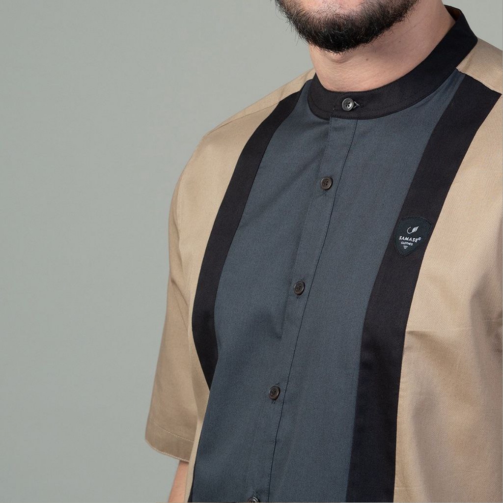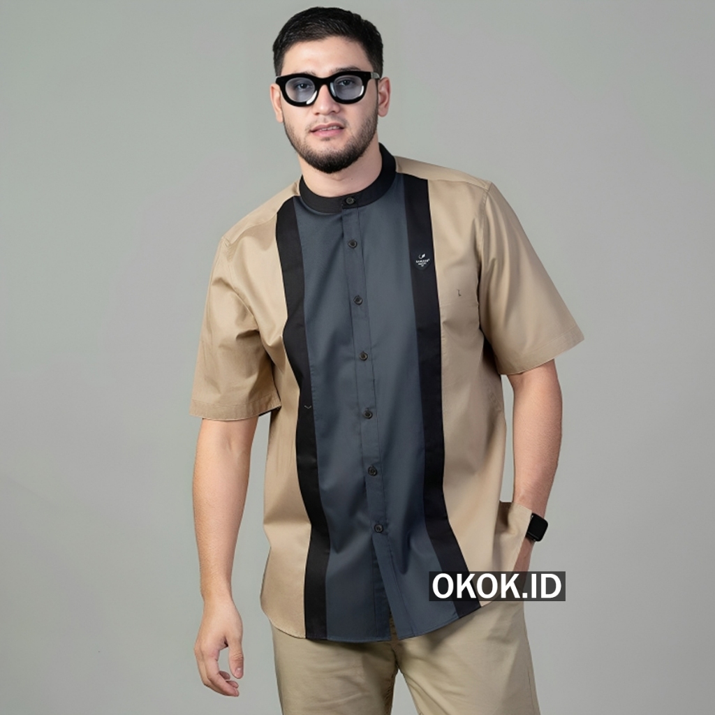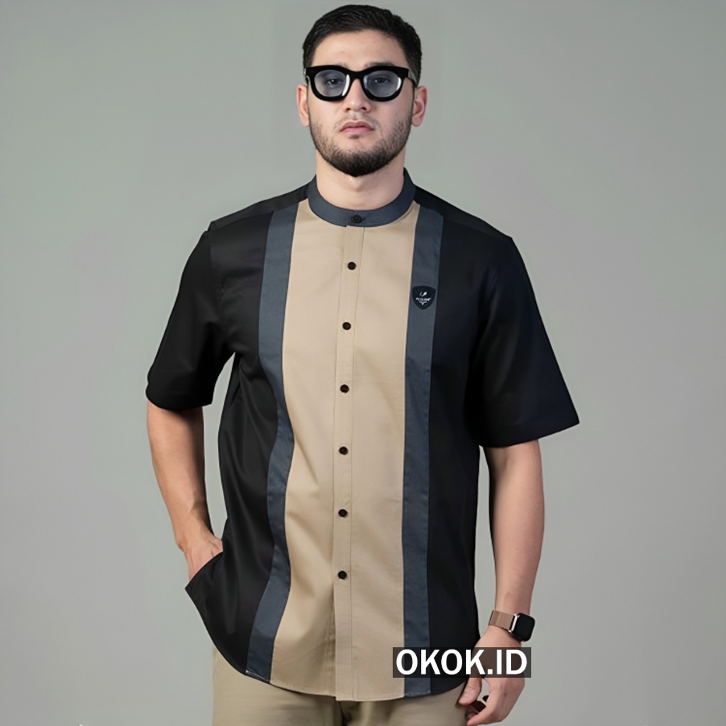 OKOK.ID BAJU KOKO PRIA KOMBINASI NEXT GEN LENGAN PENDEK KERAH SANGHAI UKURAN M L XL XXL