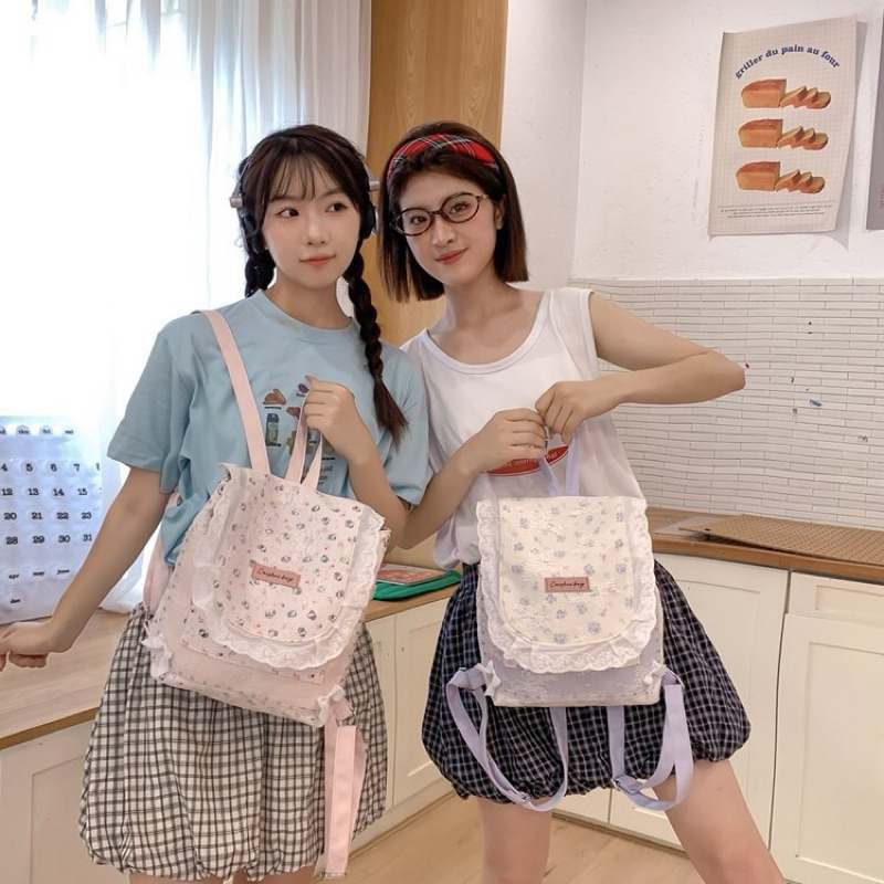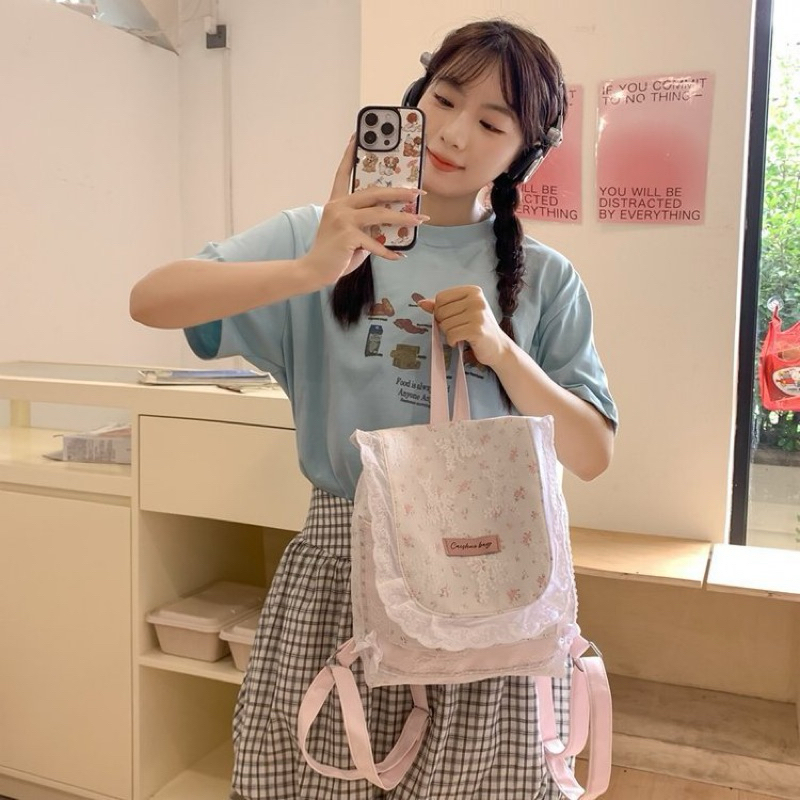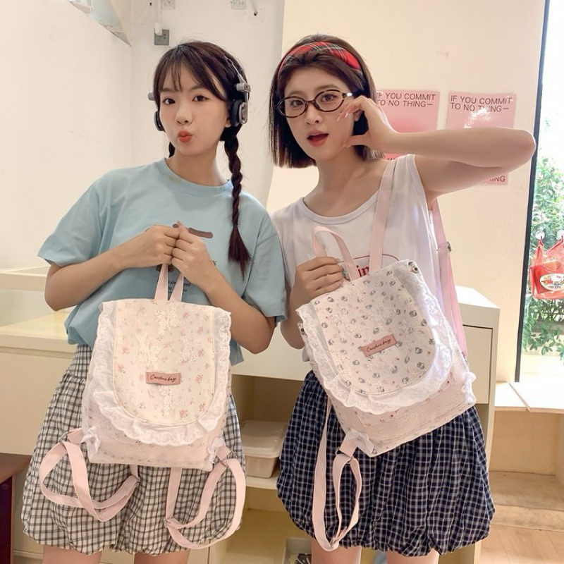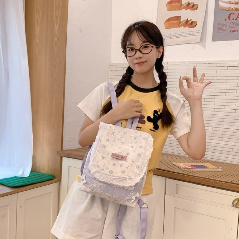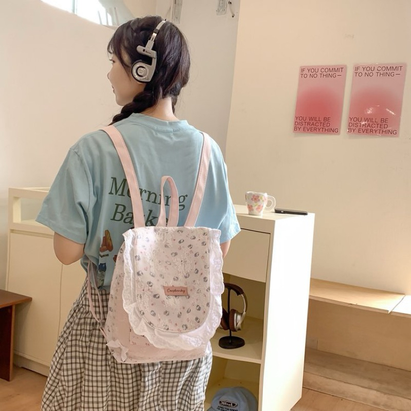 FREE ONGKIR TAS RANSEL SEKOLAH RENDA BUNGA CANTIK / BACKPACK FLOWER COQUETTE