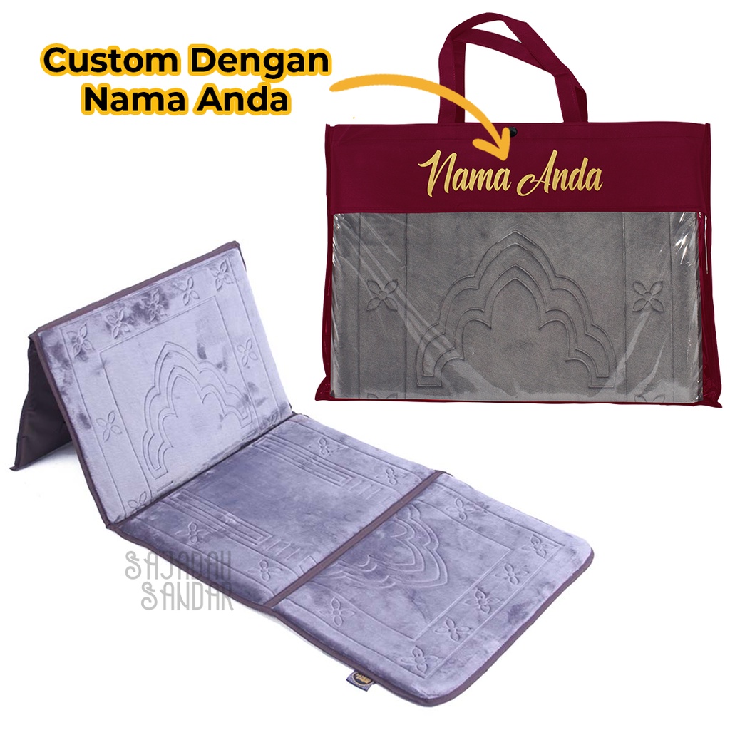 SAJADAH SANDAR MULTIFUNGSI UNTUK SANDAR / SENDER / DUDUK / LIPAT - ASYRAF CUSTOM NAMA - GREY