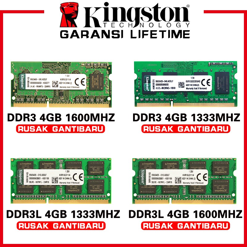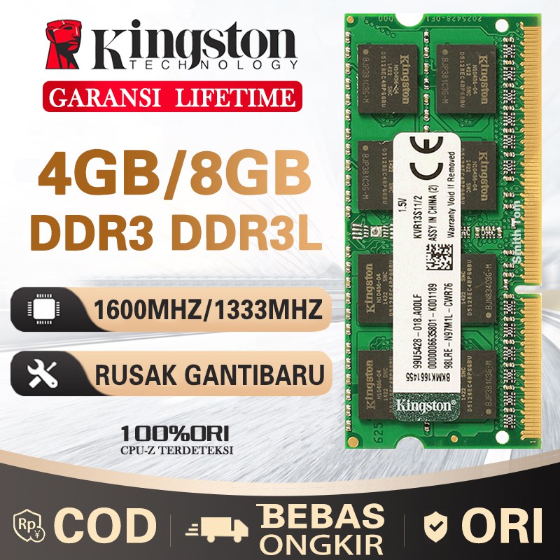 MEMORY RAM LAPTOP KINGSTON SODIMM DDR3 DDR3L 2GB 4GB 8GB 1600MHZ PC12800 1333MHZ PC10600