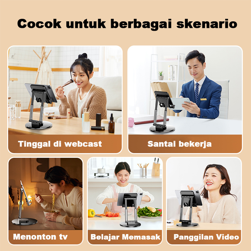 TAB BRACKET LIPAT DESKTOP 360 DEGREE ROTATABLE MALAS LIVE KOMPUTER TELESKOPIK BRACKET PONSEL LOGAM SUDUT