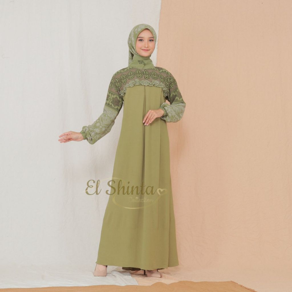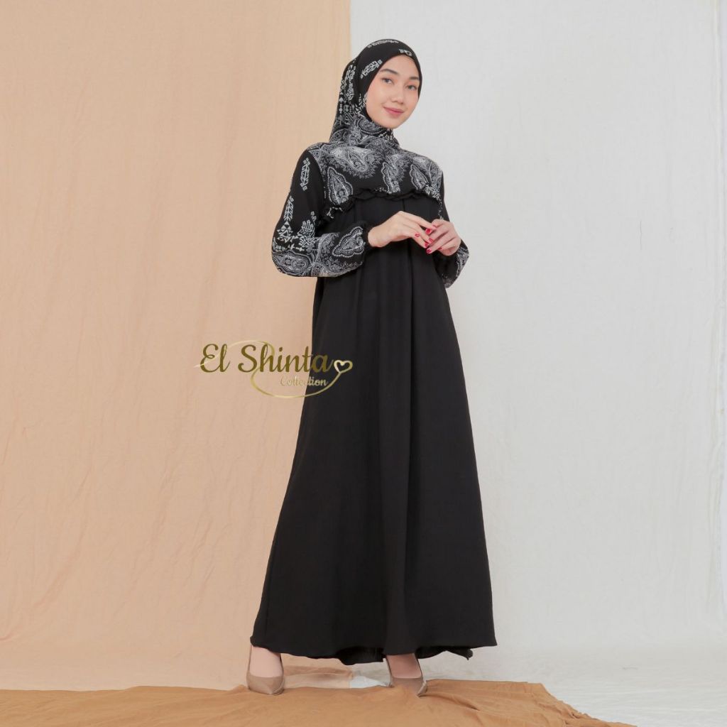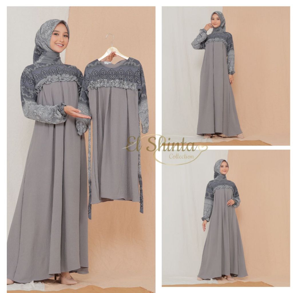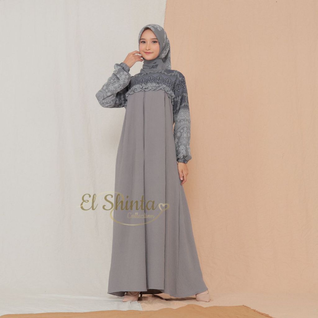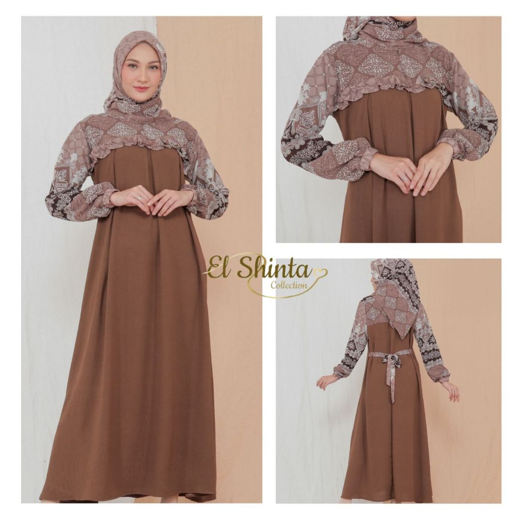 GAMIS ELEGAN CERUTY ETNIK MIX CRINKLE AIRFLOW AMIRA SET HIJAB KEKINIAN